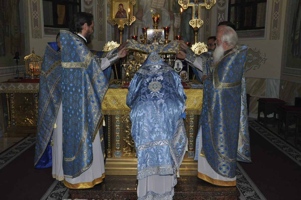 После сугубой ектении владыка вознес молитву о мире на Святой Земле, молитву о Святой Руси, и молитву об исцелении болящих.