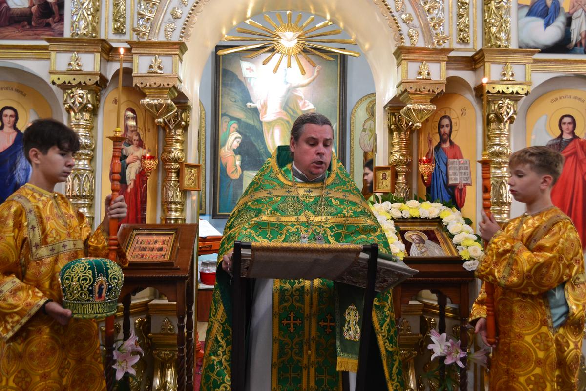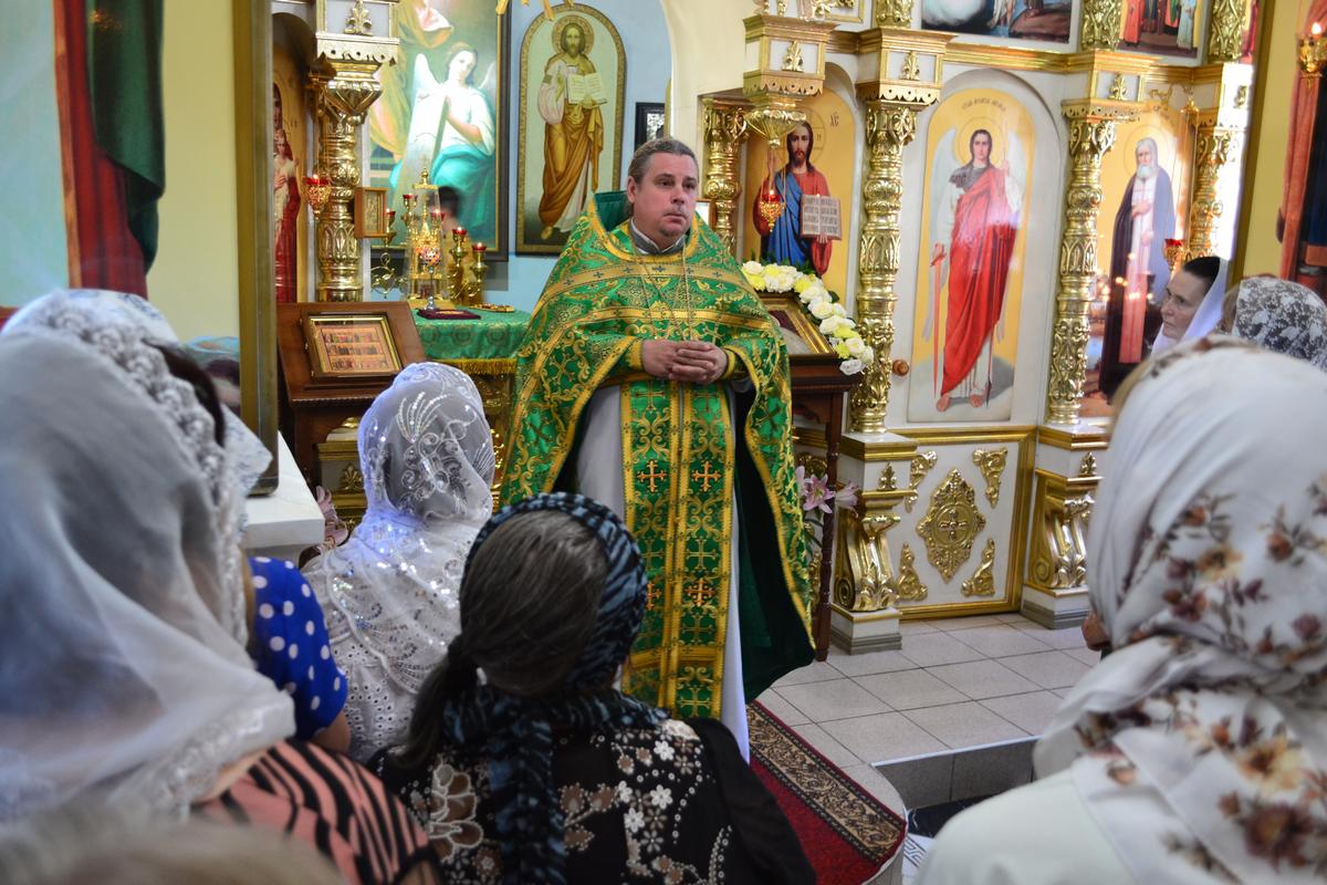 За Божественной Литургией молились о мире в нашем отечестве. После прочтения Евангельского повествования, благочинный обратился с проповедью к прихожанам, в которой рассказал о подвиге преподобного Серафима Саровского и о его почитании в нашем народе.