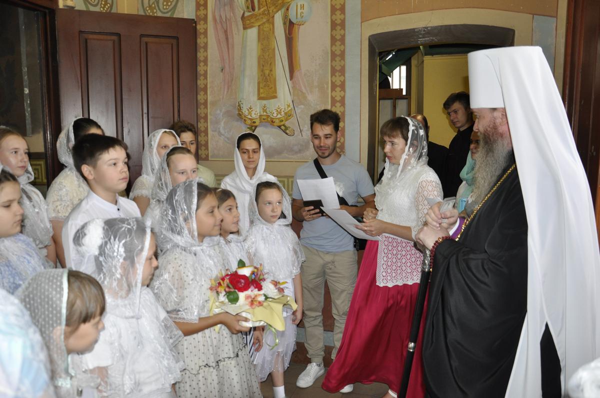 В конце богослужения, митрополит Пантелеимон поздравил священнослужителей и богомольцев с престольным днем, потому как один из приделов собора посвящен пророку Божию Илии, после чего преподал благословение участникам торжества.
