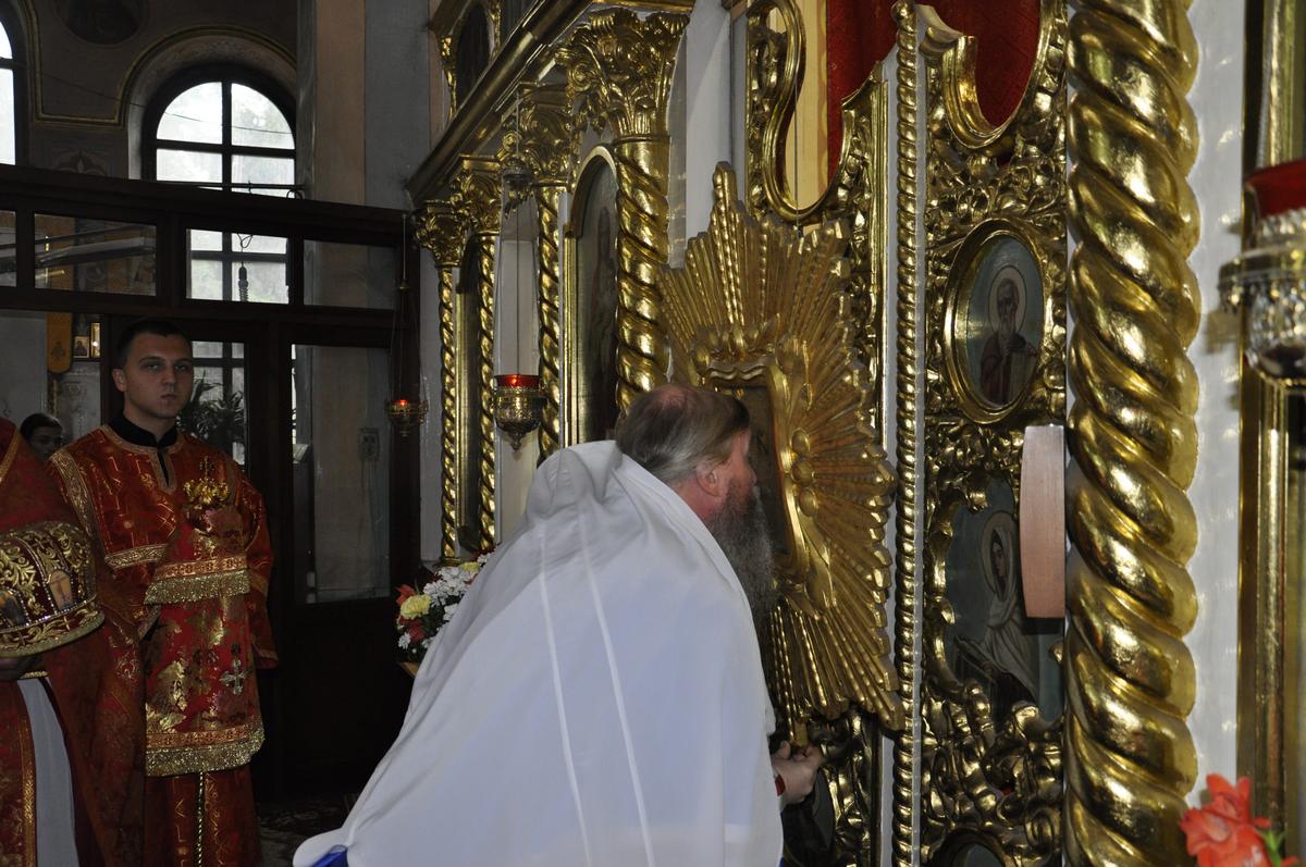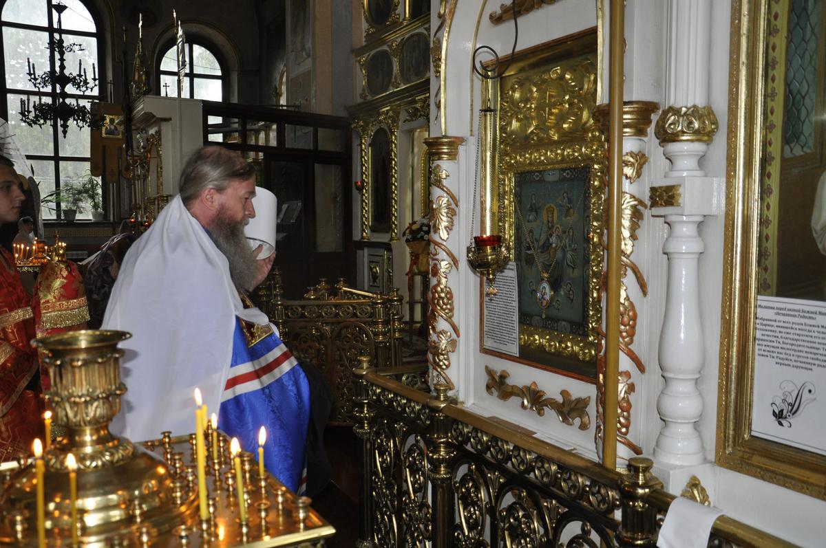 После сугубой ектении владыка вознес молитву о мире на Святой Земле, молитву о Святой Руси, и молитву об исцелении болящих.
