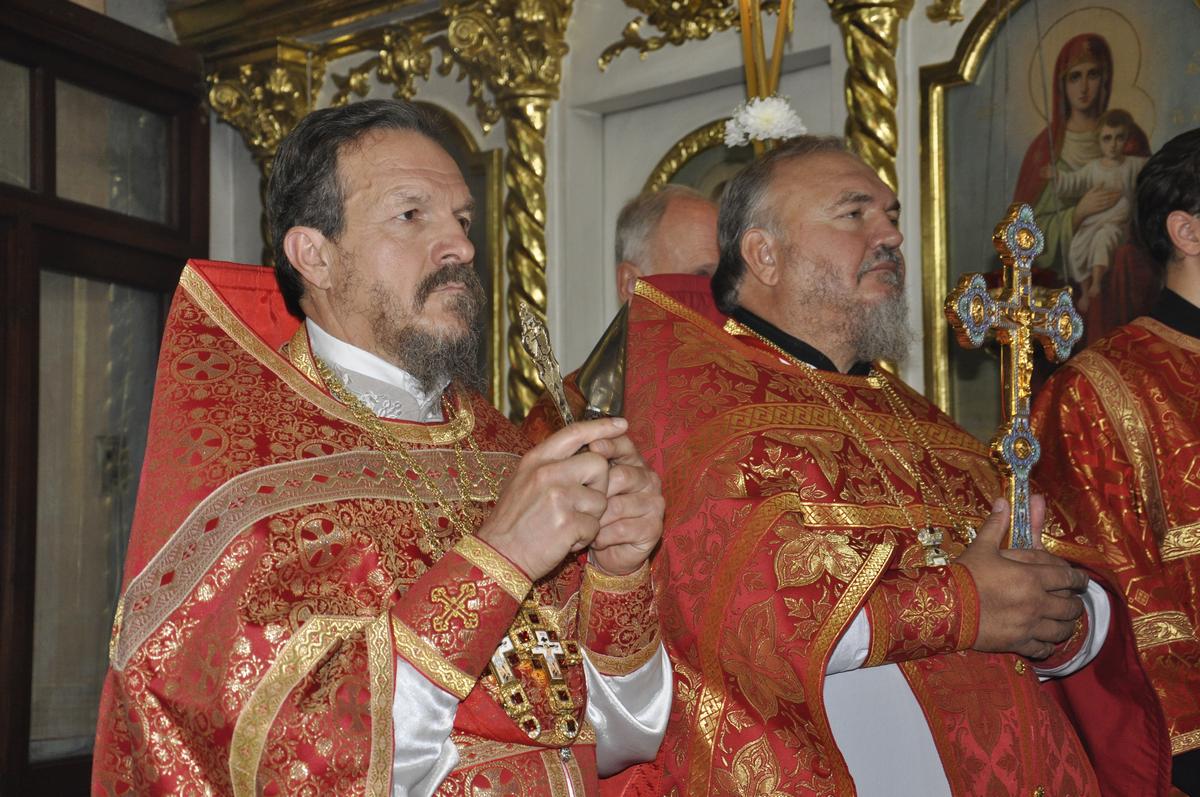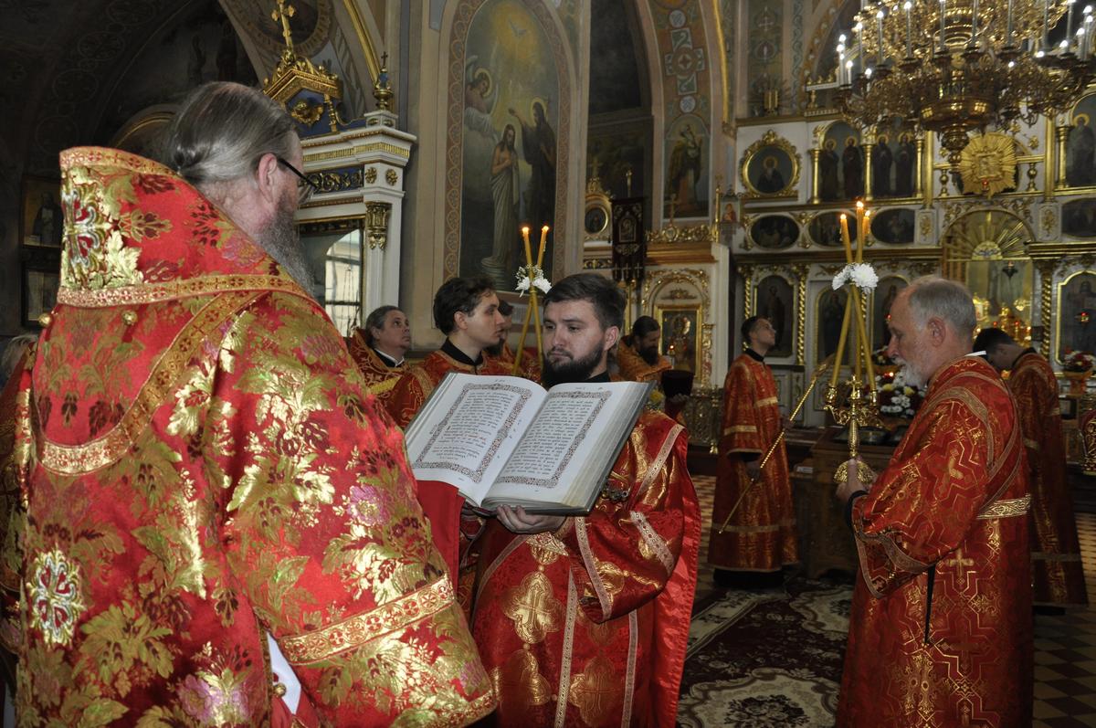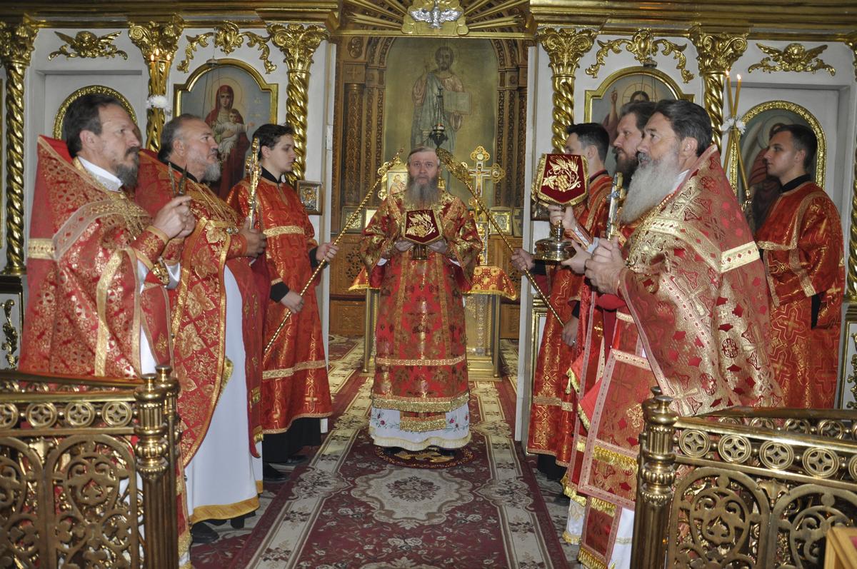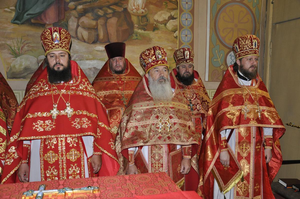 За Божественной литургией Его Высокопреосвященству сослужил секретарь епархии прот. Андрей Зозуля, благочинный Алчевского округа и настоятель собора прот. Александр Устименко, благочинный Ровеньковского округа Ровеньковской епархии прот. Григорий Устименко, благочинный Михайловского округа Ровеньковской епархии прот. Александр Притула, и.о благочинного Стахановского округа Северодонецкой епархии архим. Владимир Могильный, а также приглашенное духовенство.