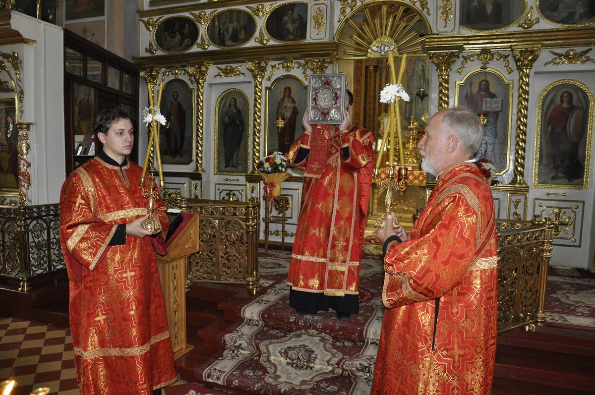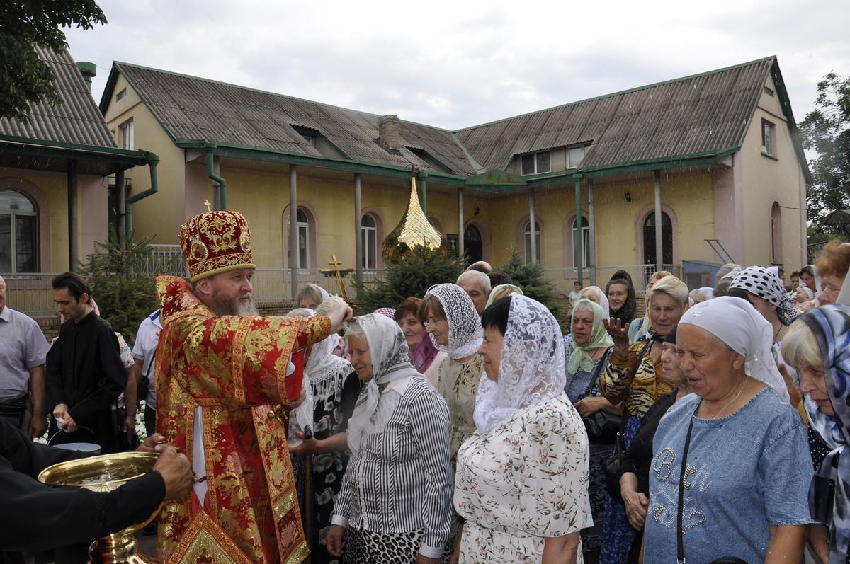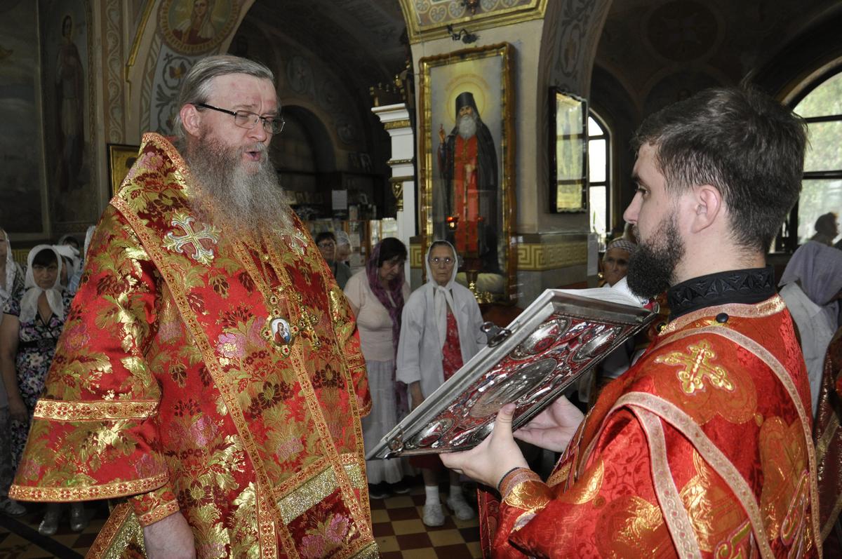 По окончании Литургии духовенство и верующий народ во главе с архипастырем, прошли крестным ходом вокруг собора, прославляя угодника Божия и окропляя молящихся святой водой.