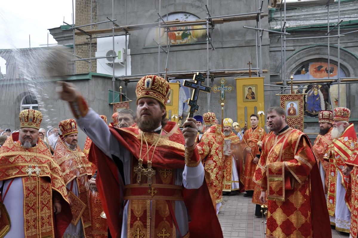 Во время крестного хода владыка Пантелеимон освятил новый накупольный крест.