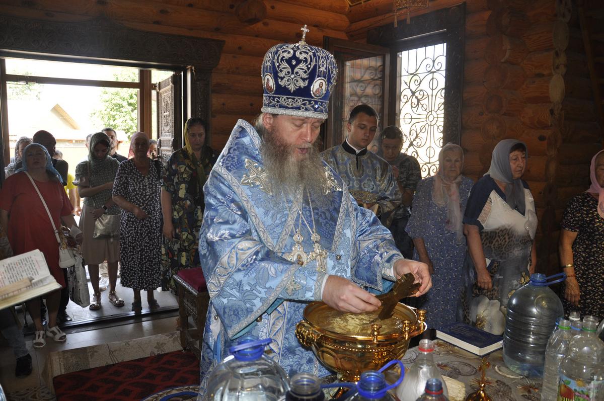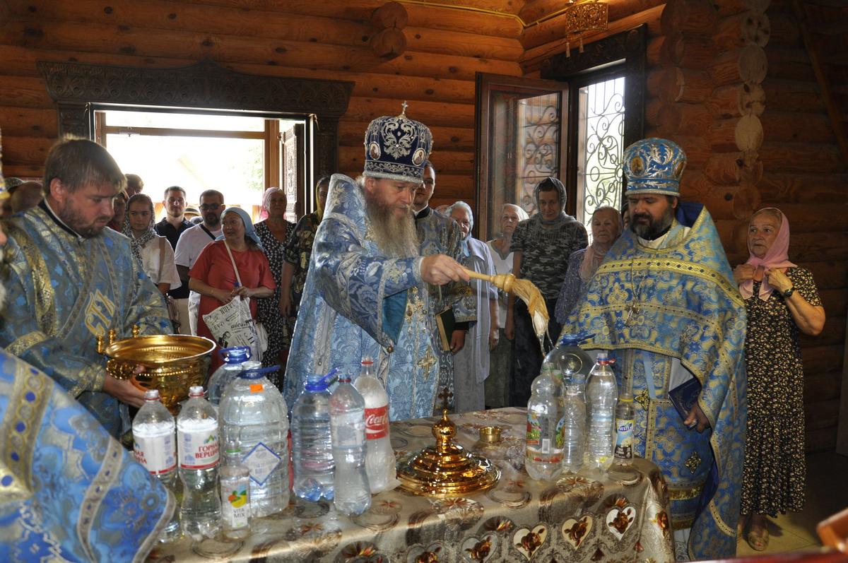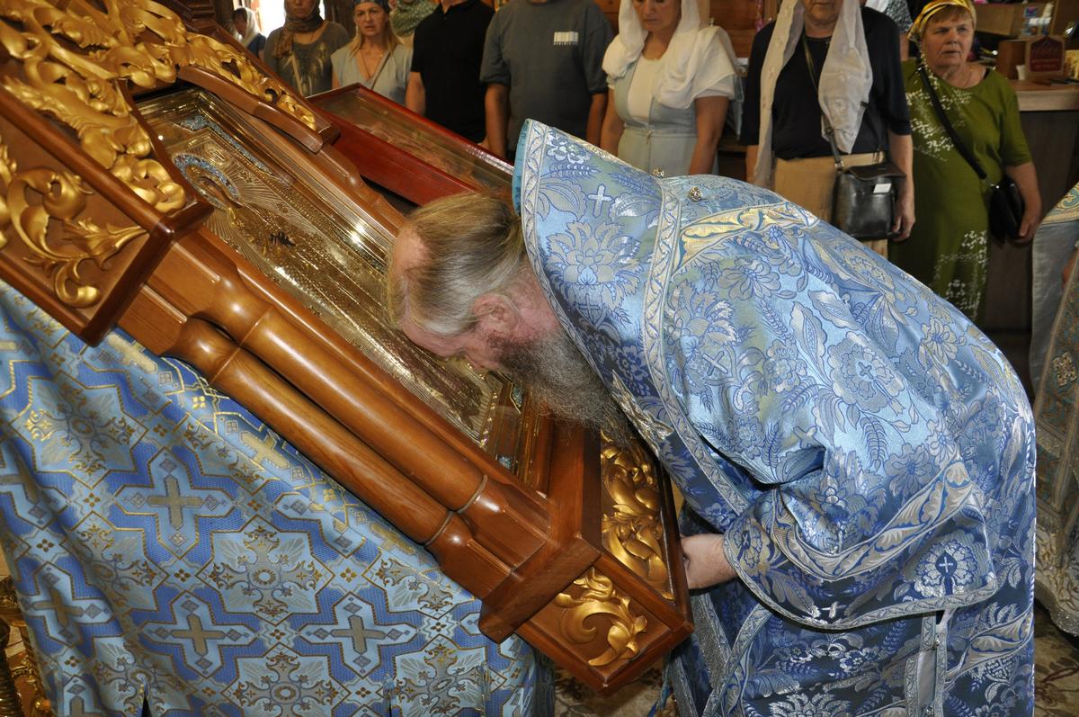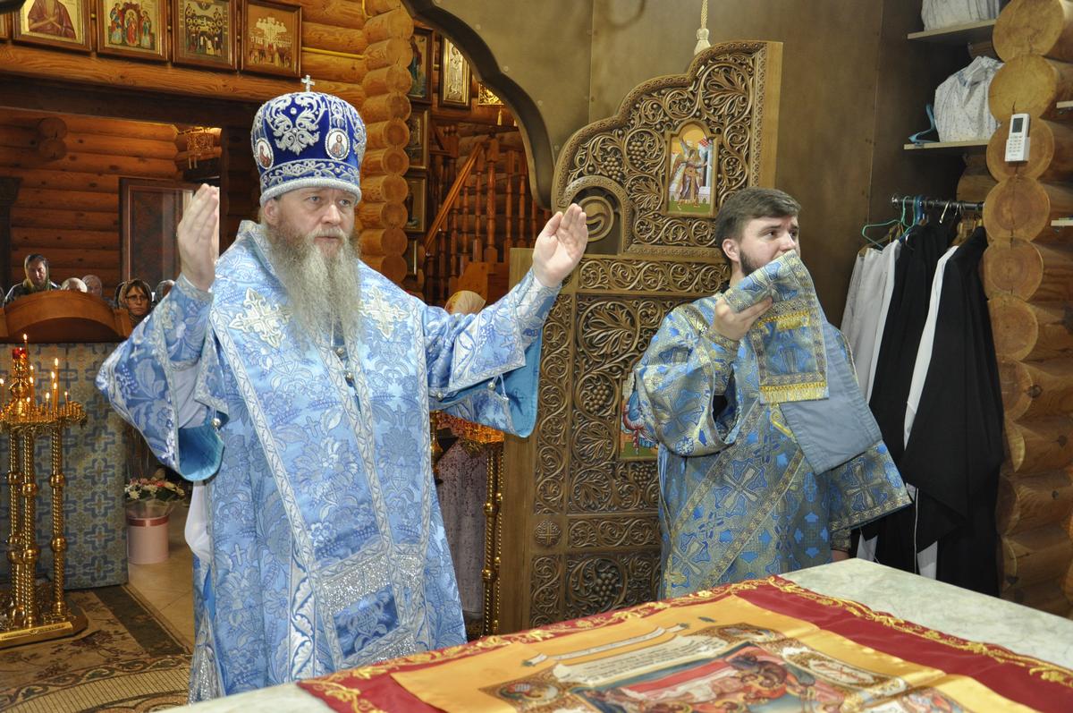 Перед началом Литургии архипастырь совершил водосвятный молебен перед точным списком Луганской иконы Божией Матери, освященный 27 июня в рамках празднования юбилея епархии и который по 7 ноября текущего года, крестным ходом приносится для поклонения верующим во все благочиннические округа..