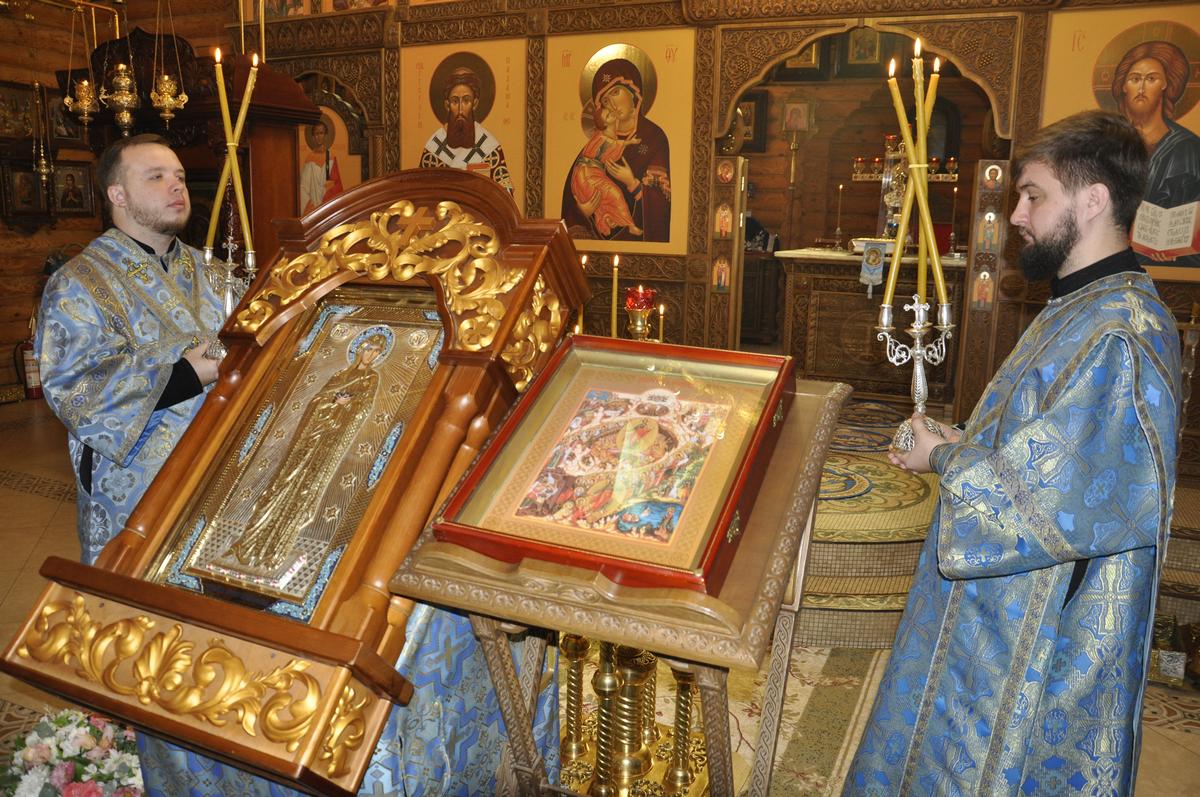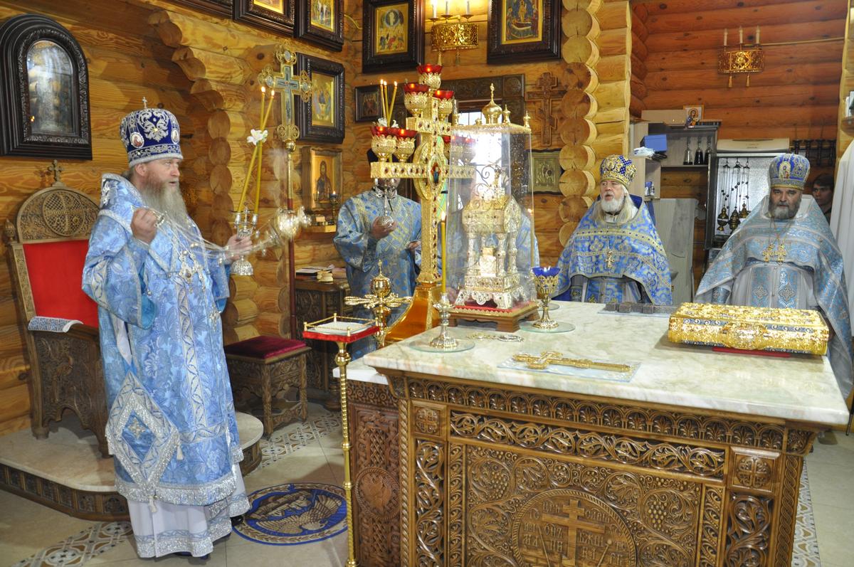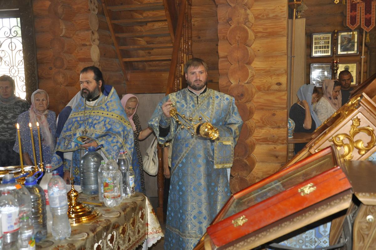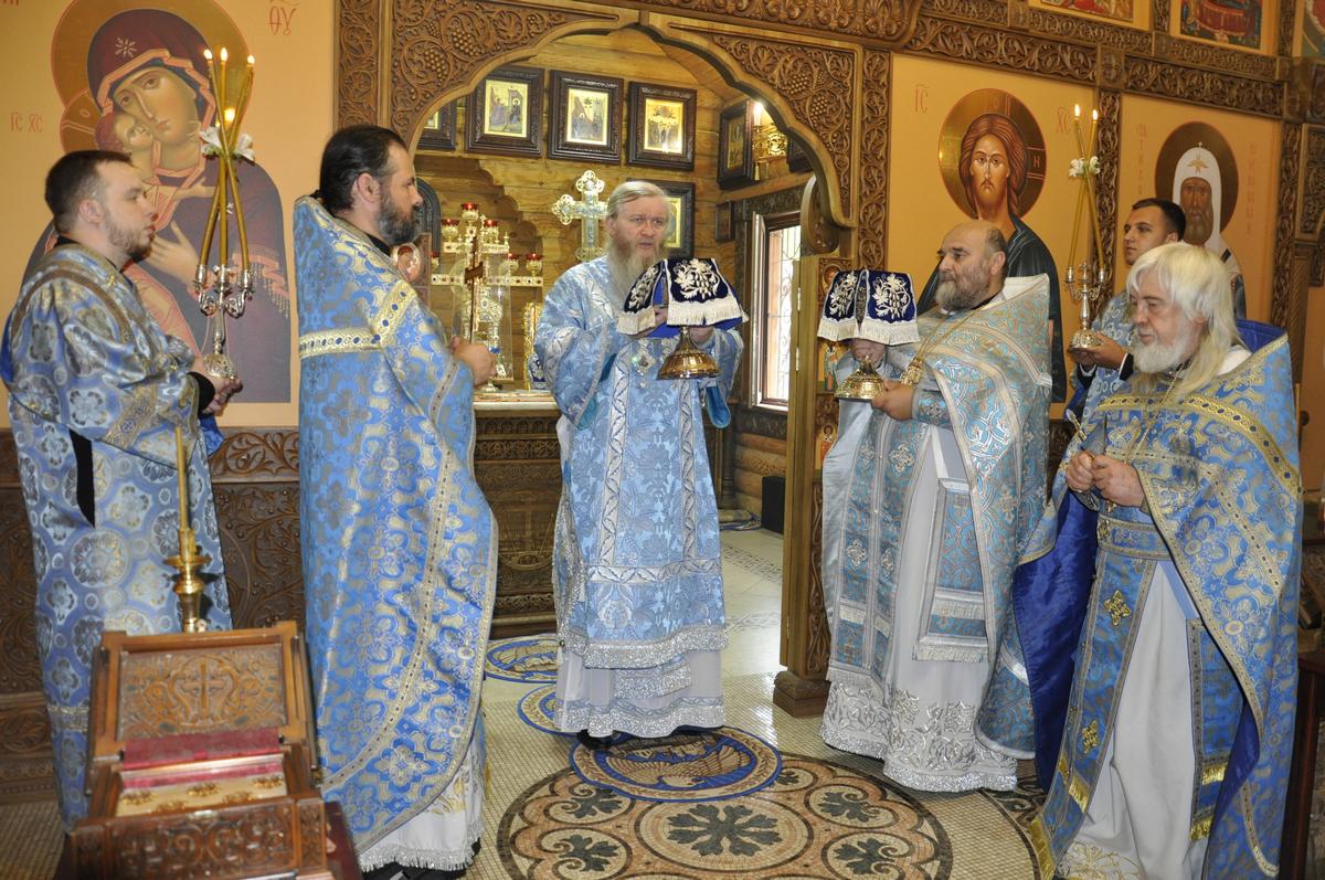 Перед началом Литургии архипастырь совершил водосвятный молебен перед точным списком Луганской иконы Божией Матери, освященный 27 июня в рамках празднования юбилея епархии и который по 7 ноября текущего года, крестным ходом приносится для поклонения верующим во все благочиннические округа..