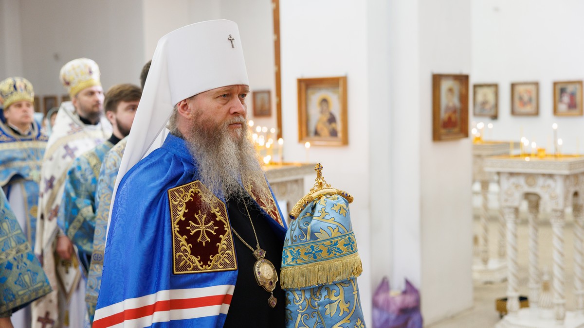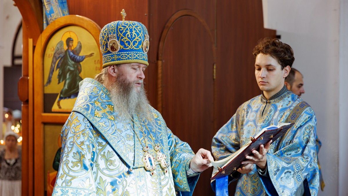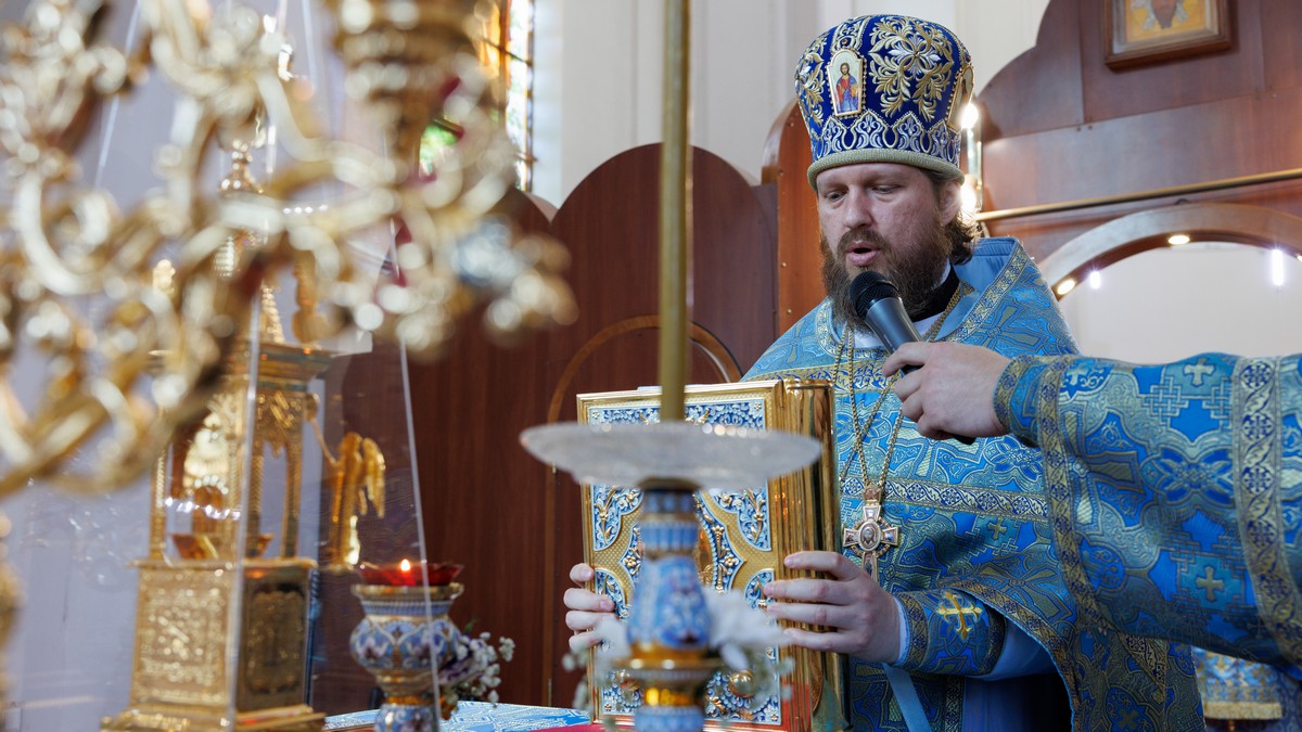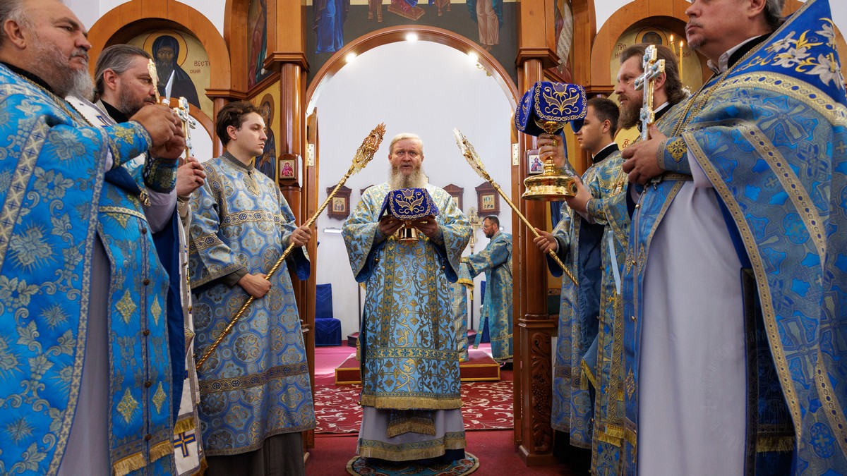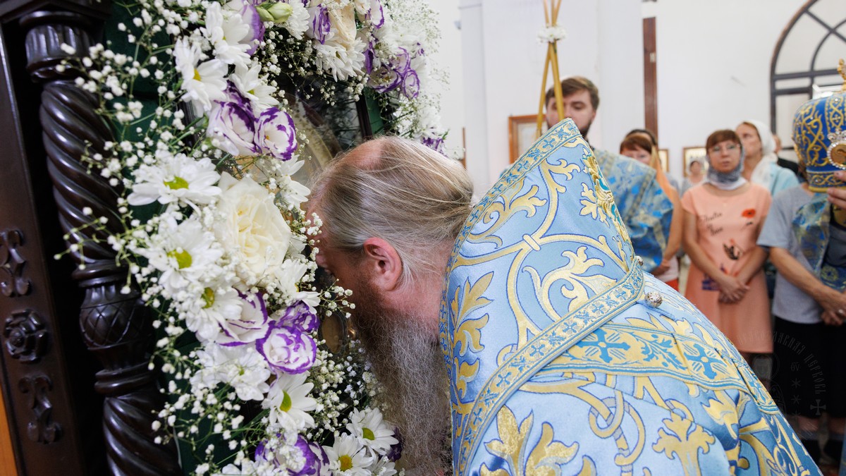 После прочтения Евангельского повествования владыка произнес проповедь, в которой рассказал о нашей любви и почитании Матери Божией и Ее честного образа «Умиление».
