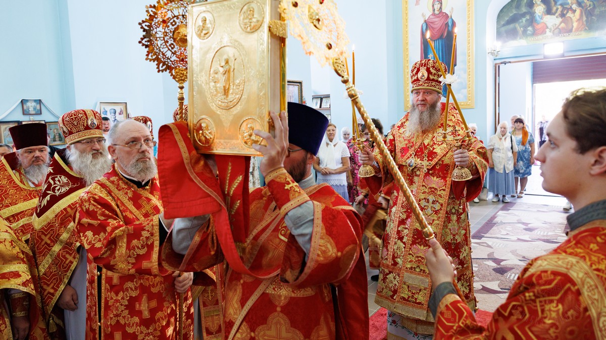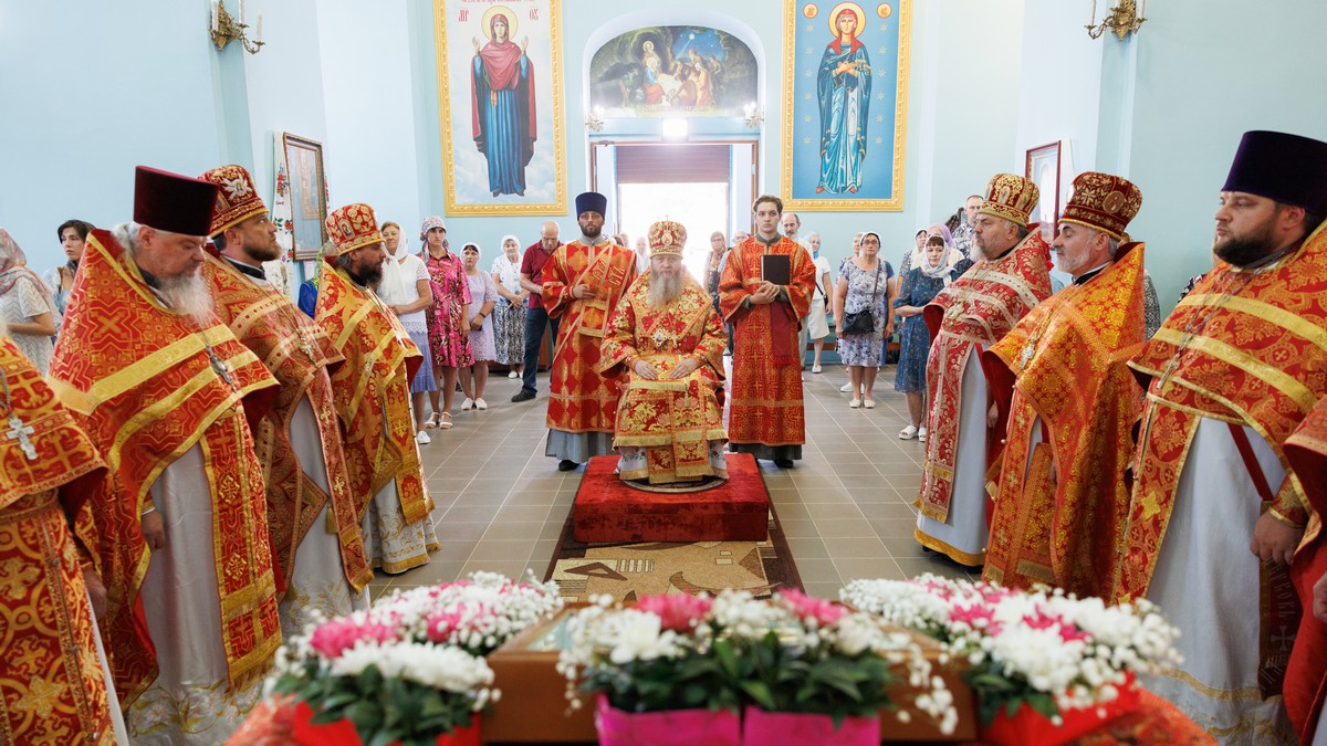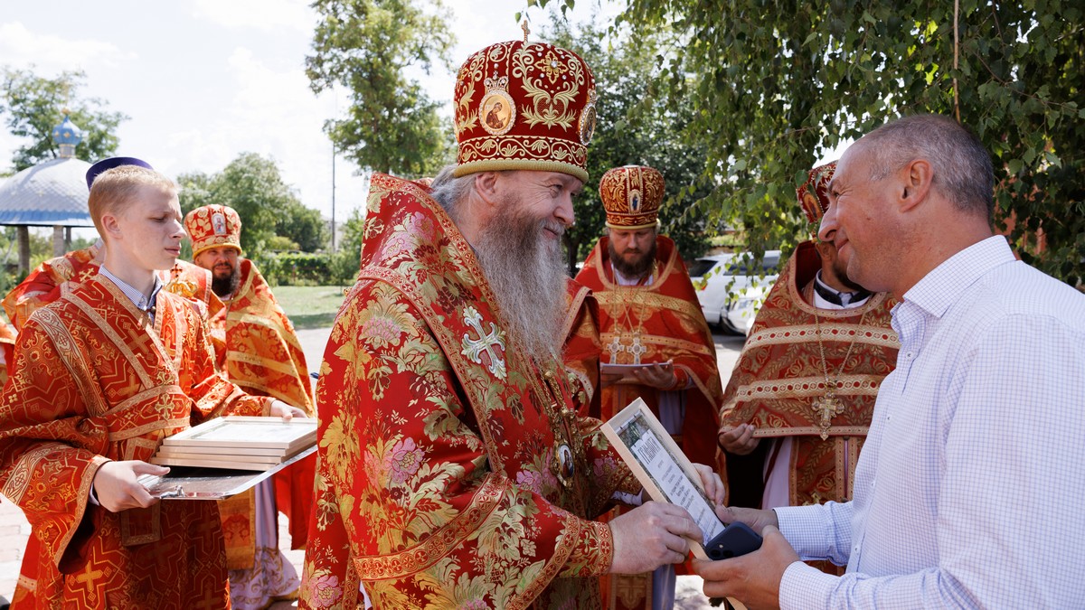 По окончании богослужения владыка обратился к верующим со словами приветствия по случаю престольного дня и юбилея храма.