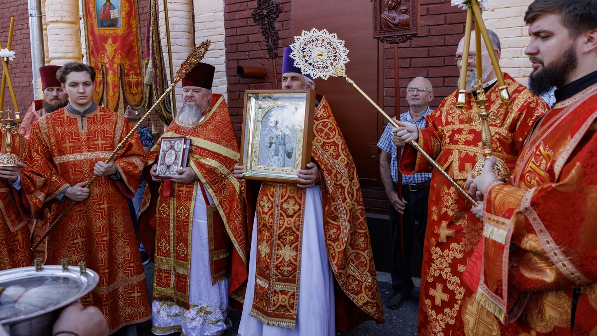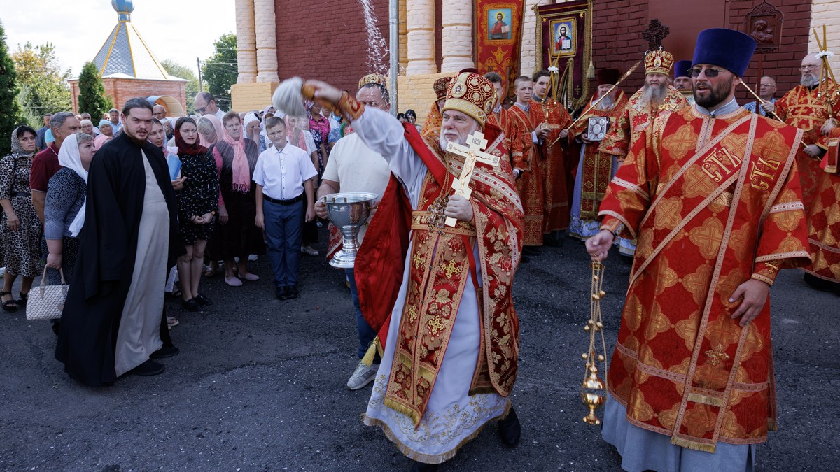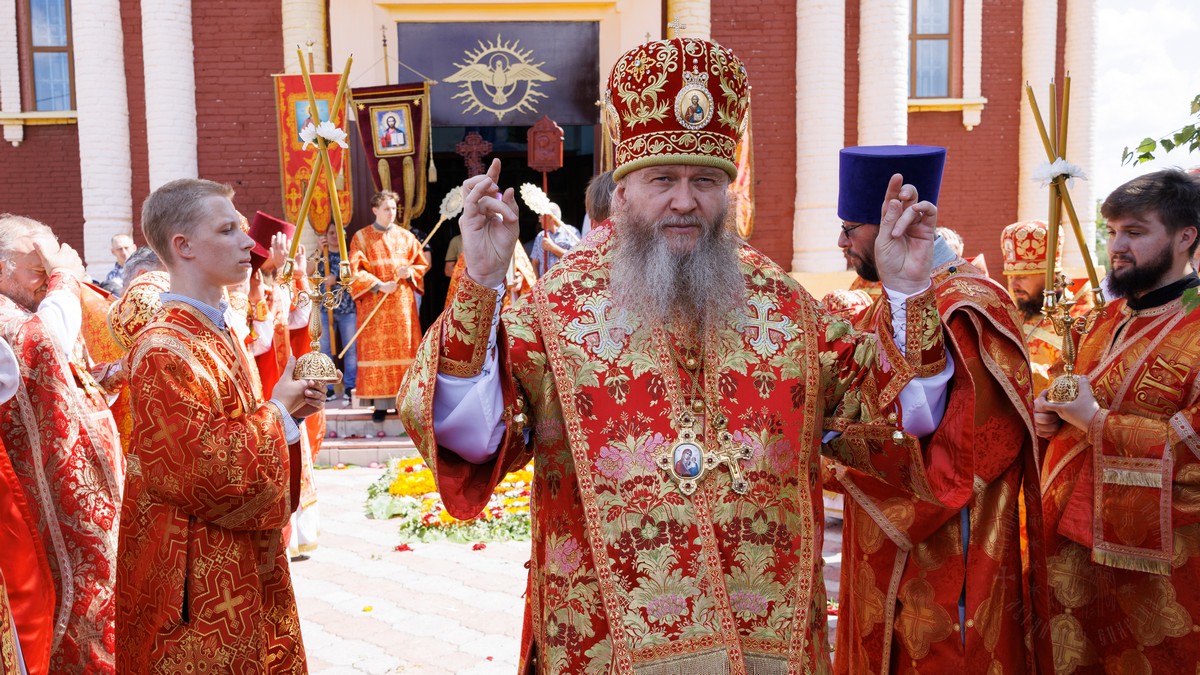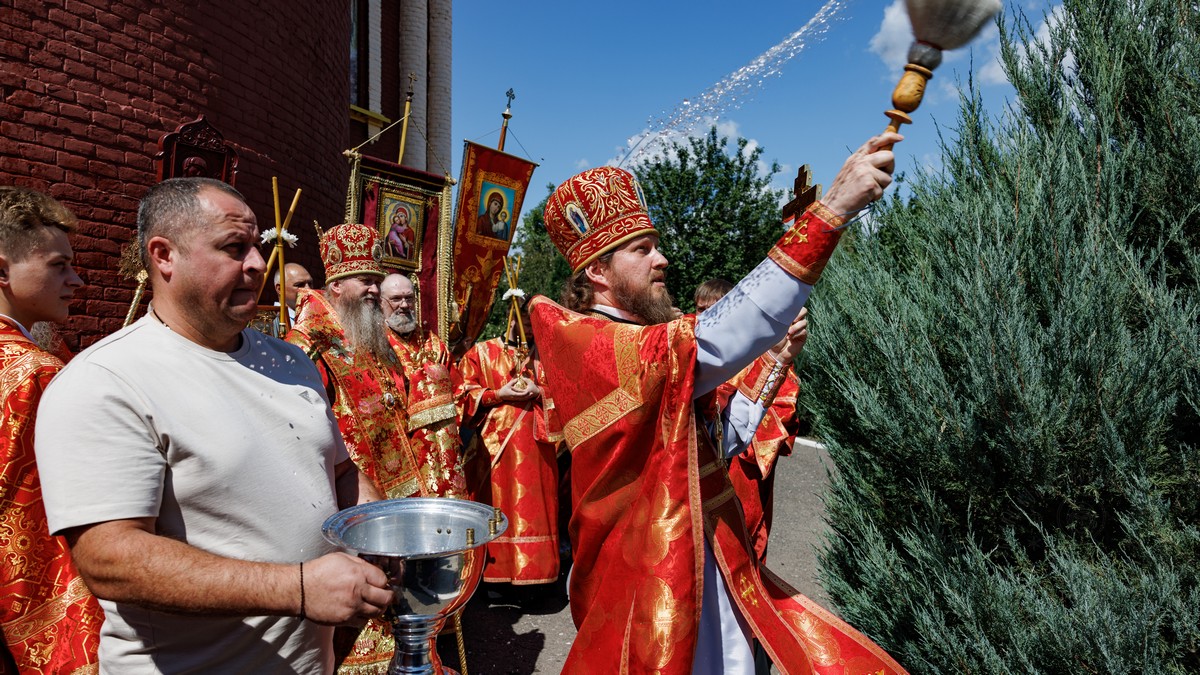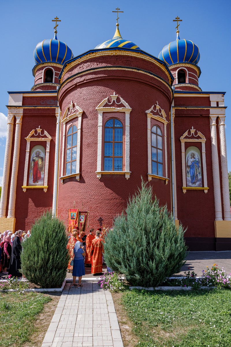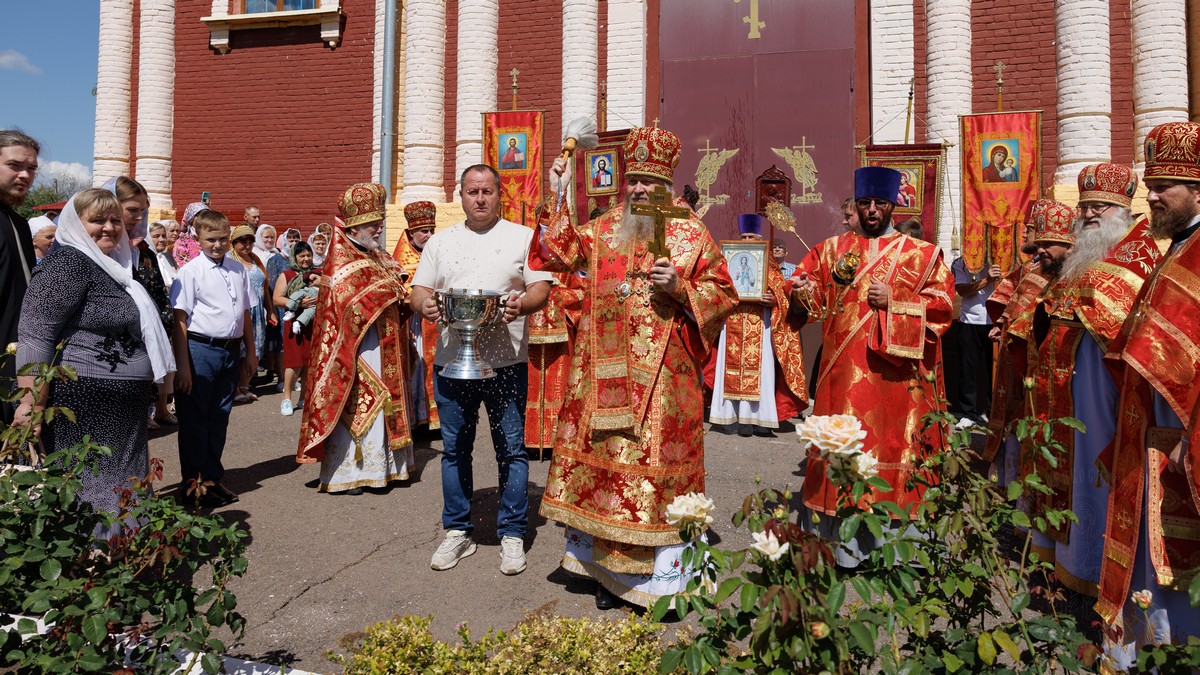 По окончании Божественной Литургии, владыка, духовенство и верующий народ совершили крестный ход, во время которого молились святому покровителю храма.