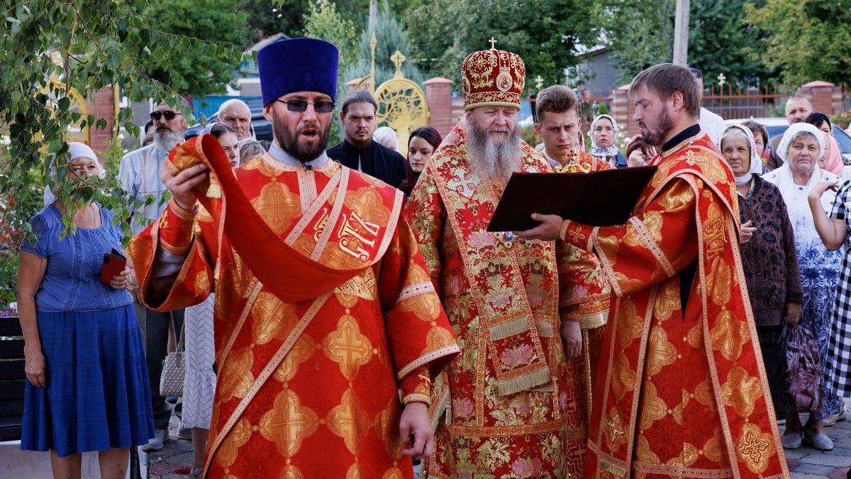 Его Высокопреосвященству сослужил секретарь епархии протоиерей Андрей Зозуля, благочинный Александровского округа протоиерей Иаков Лобов, благочинный Алчевского округа протоиерей Александр Устименко, настоятель храма протоиерей Николай Мисяйло, а также духовенство благочиния.