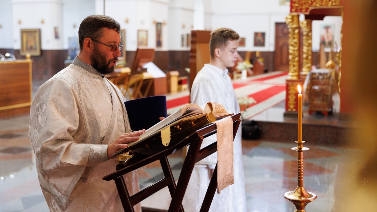 За богослужением Его Высокопреосвященству сослужил секретарь епархии прот. Андрей Зозуля, а также соборное духовенство.