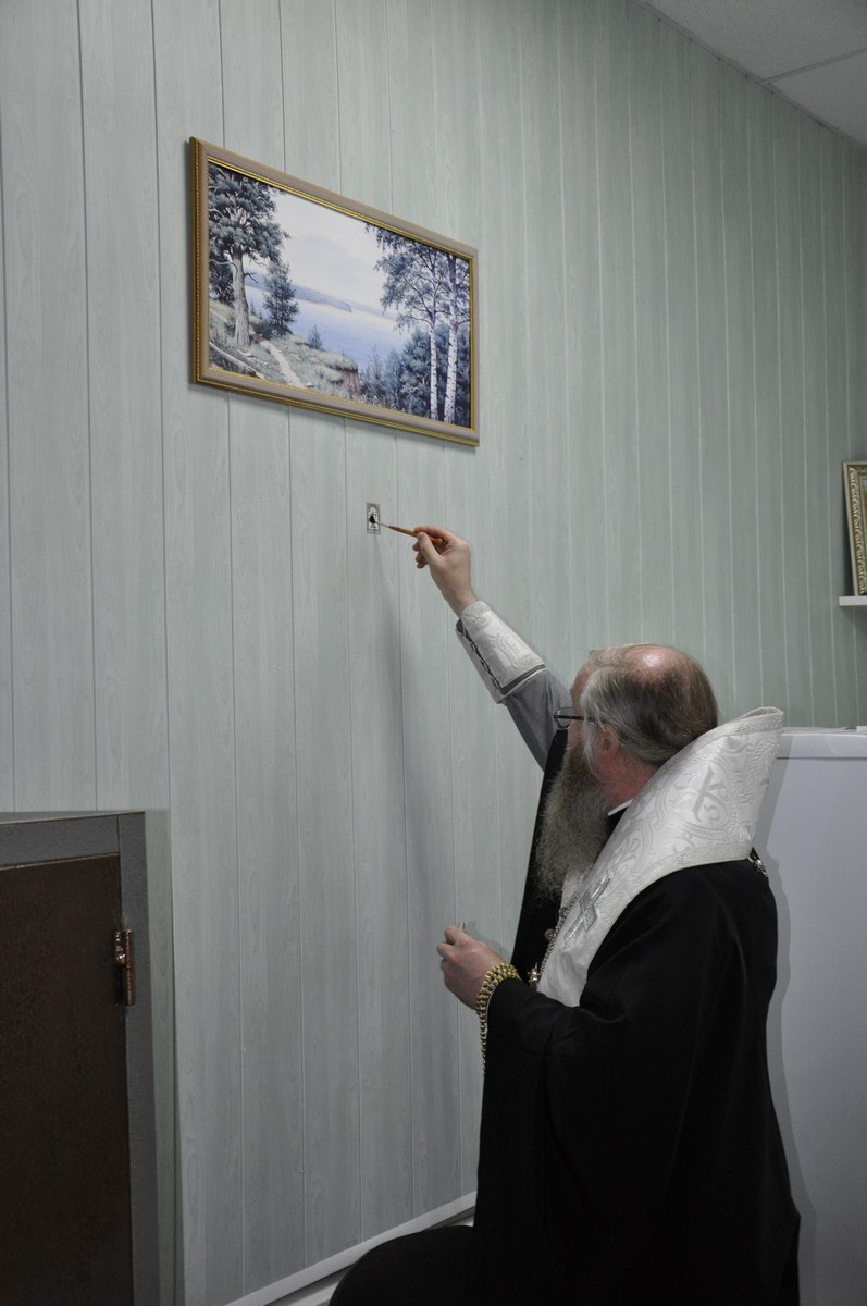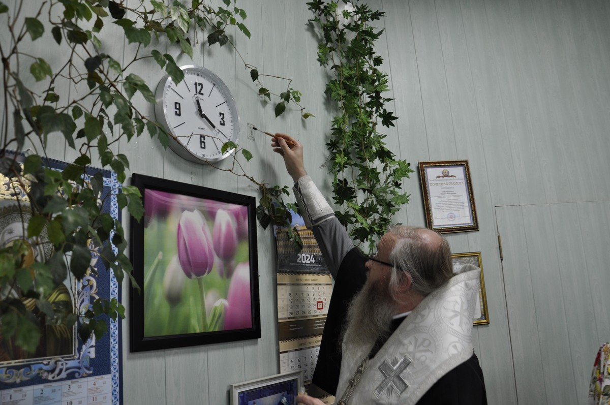 В продолжение своего визита в благочиние, владыка посетил Новоайдарский муниципальный округ и освятил рабочий кабинет Филипповой Марины Викторовны Главы муниципального образования.
