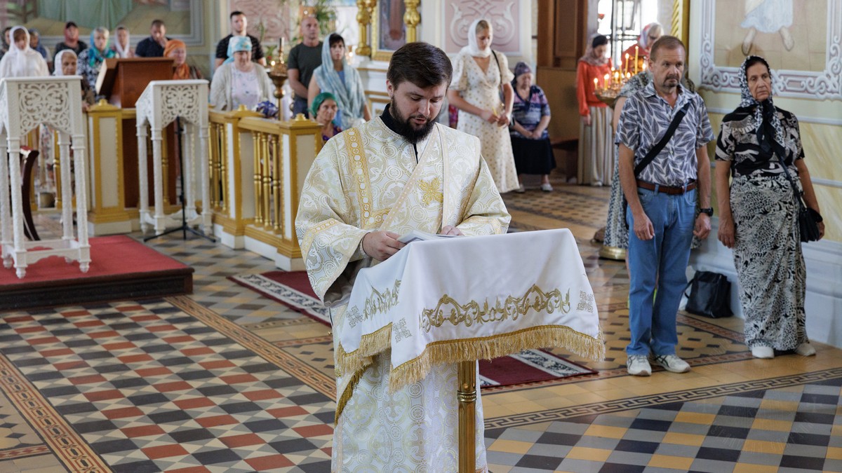 25 августа, в Неделю 9-ю по Пятидесятнице, Высокопреосвященнейший Пантелеимон, митрополит Луганский и Алчевский, совершил позднюю Божественную литургию в Свято-Петро-Павловском кафедральном соборе.