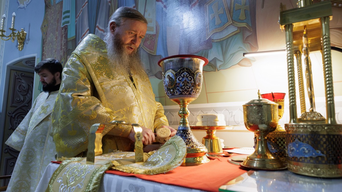 После сугубой ектении владыка вознес молитву о мире на Святой Земле, молитву о Святой Руси, и молитву об исцелении болящих.