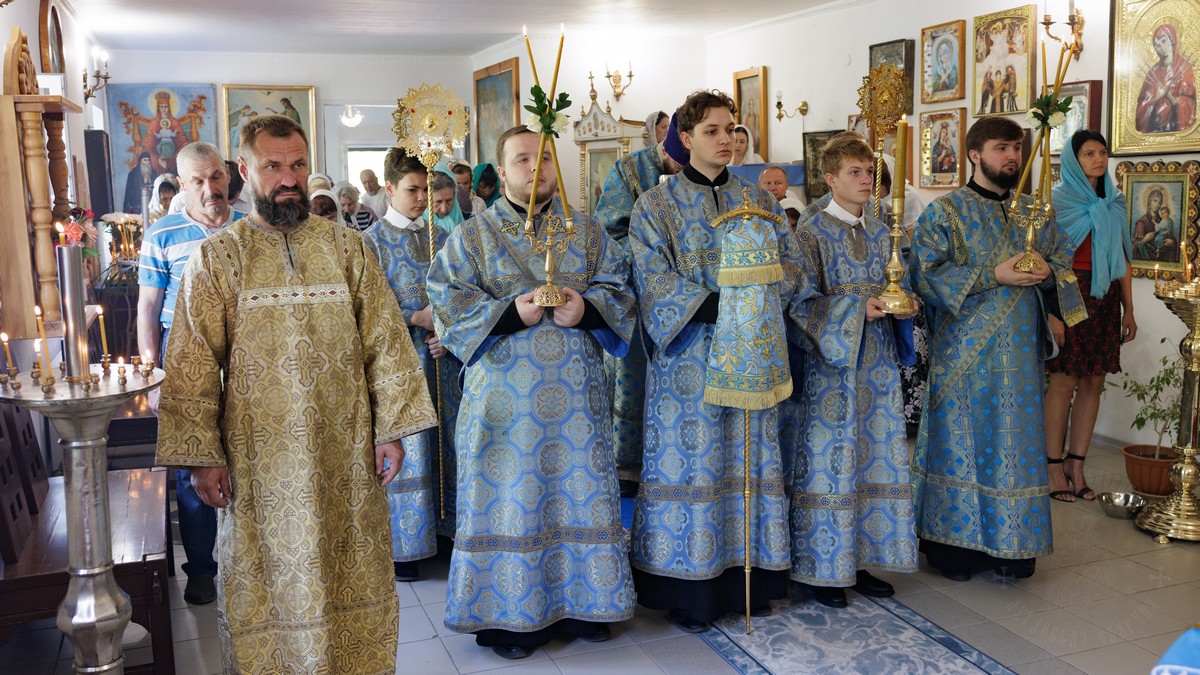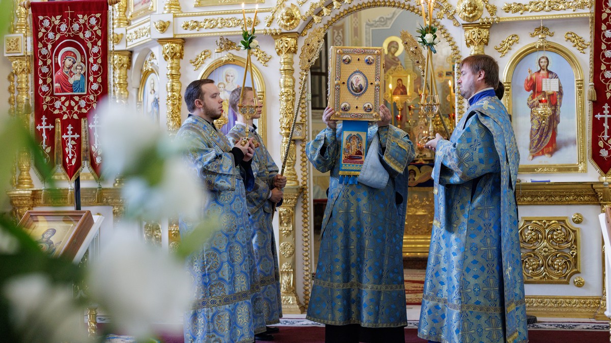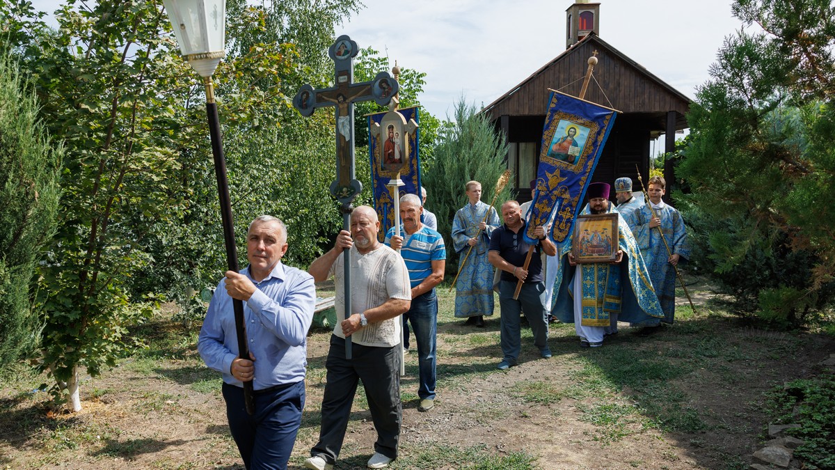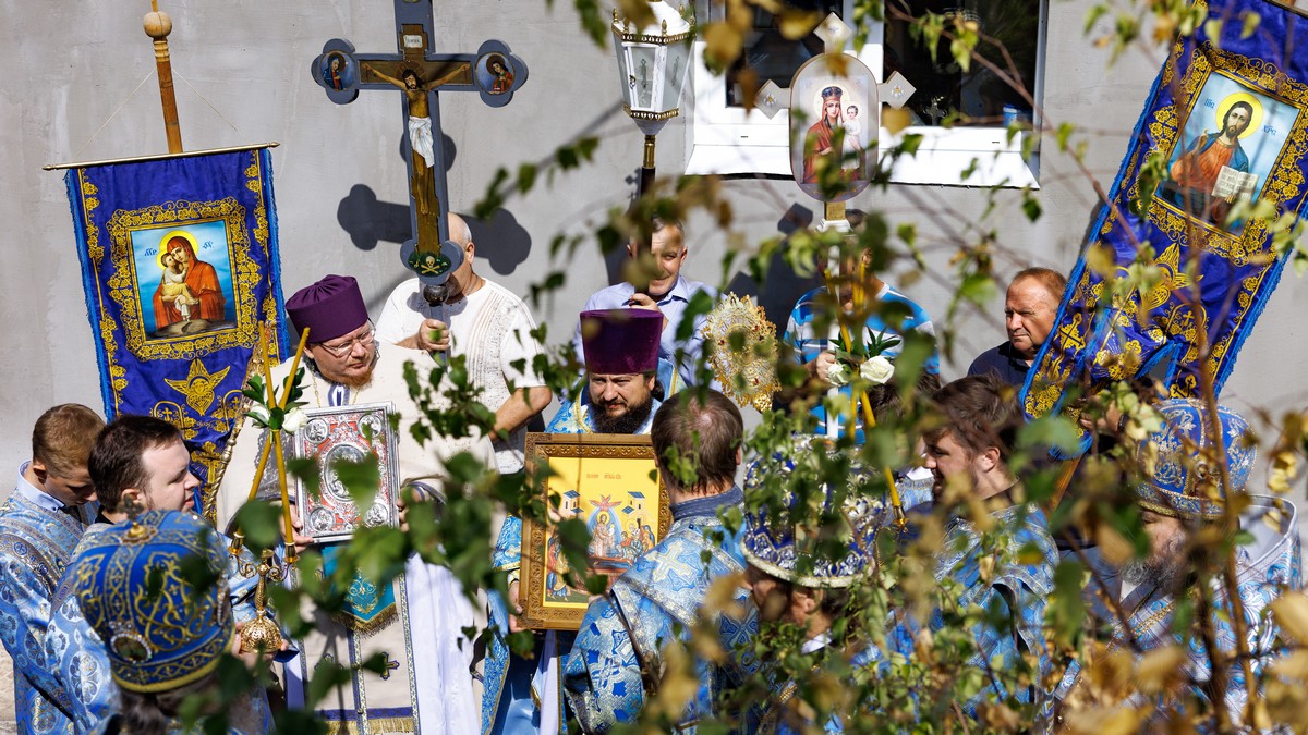 Сразу по окончании Литургии был совершен крестный ход вокруг храма, во время которого в молитвах и песнопениях прославляли Божию Матерь.
