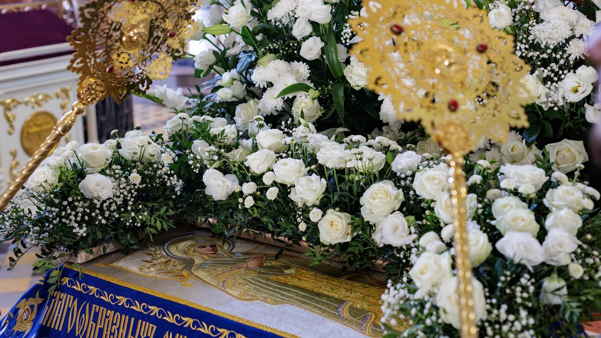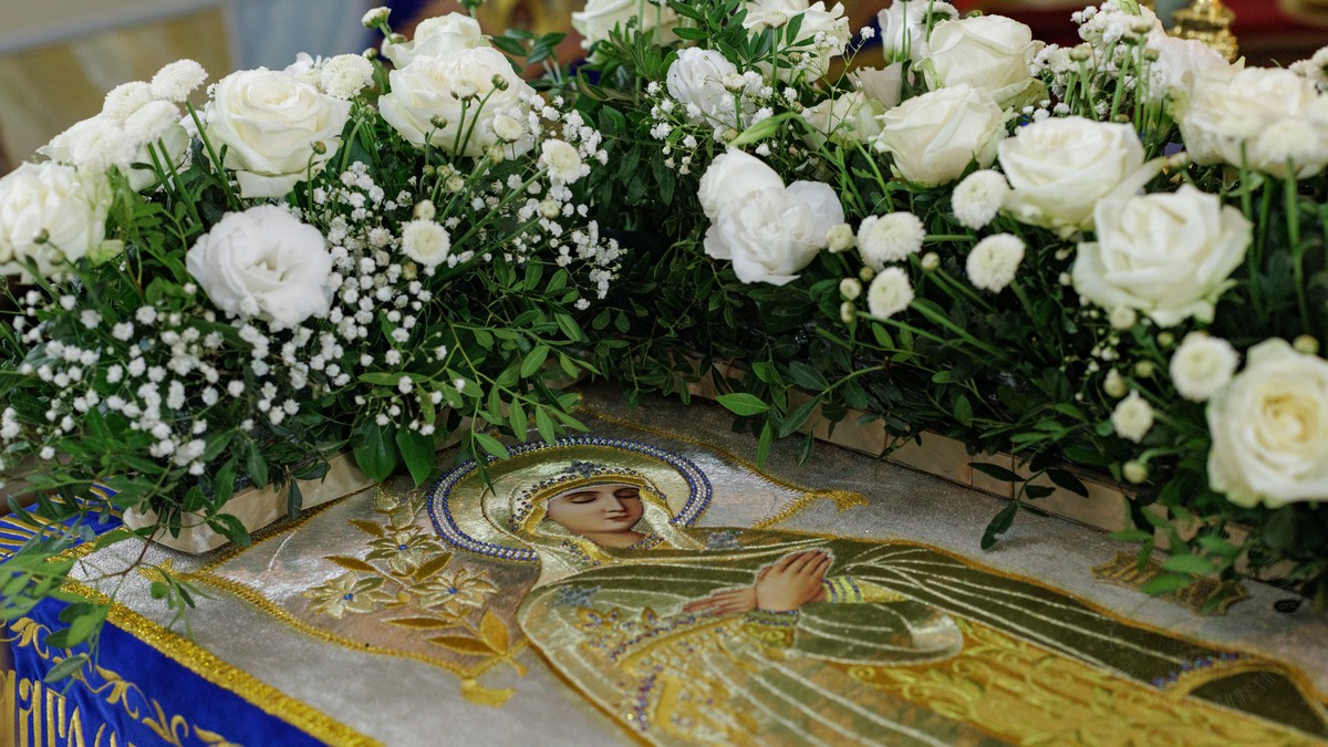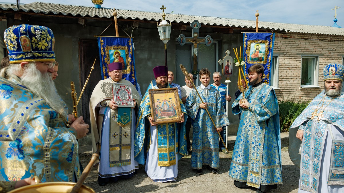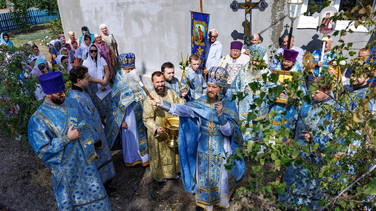 Сразу по окончании Литургии был совершен крестный ход вокруг храма, во время которого в молитвах и песнопениях прославляли Божию Матерь.