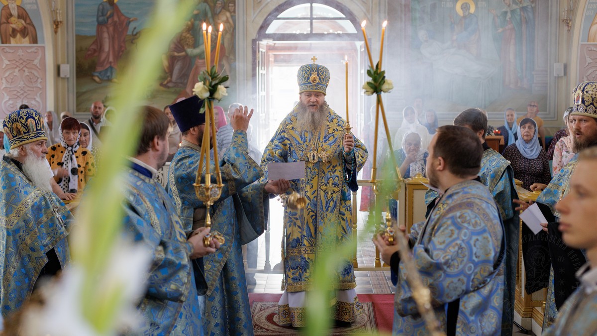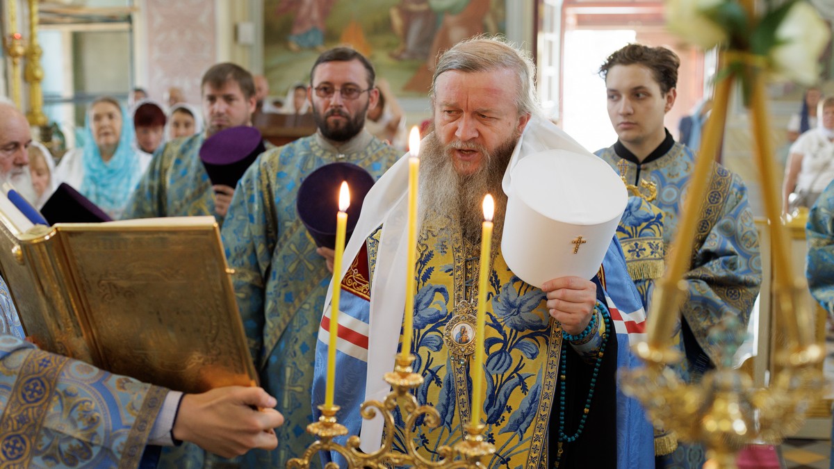 Накануне праздника архипастырь совершил Всенощное бдение в Свято-Петро-Павловском кафедральном соборе.