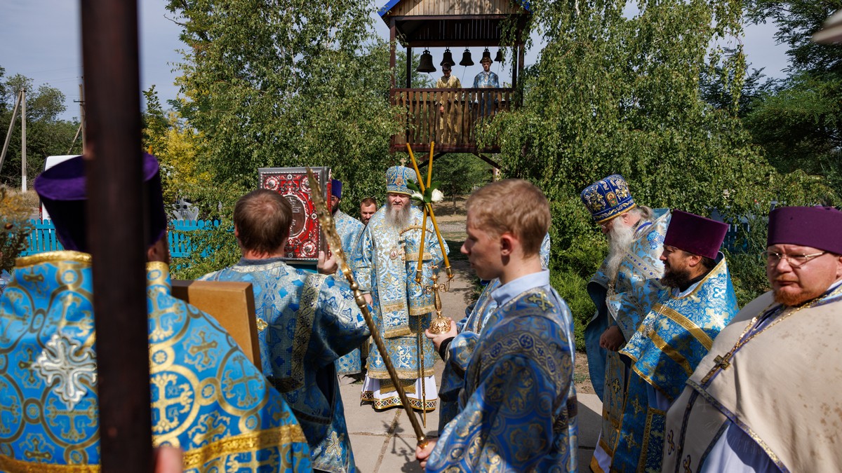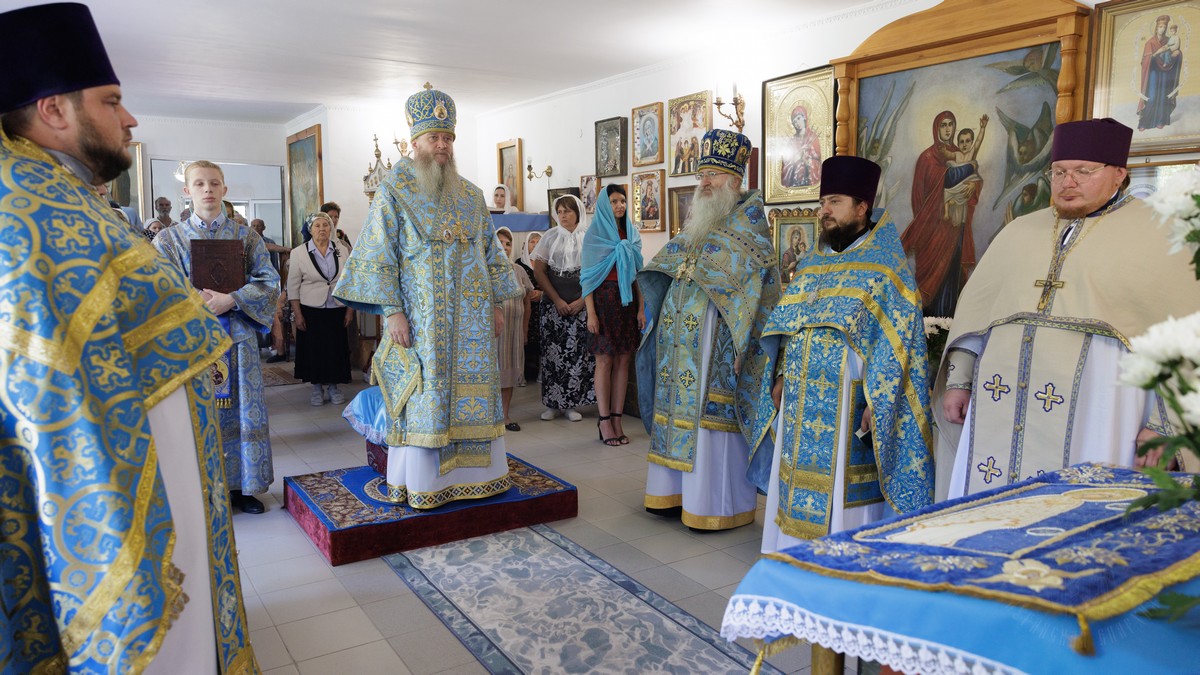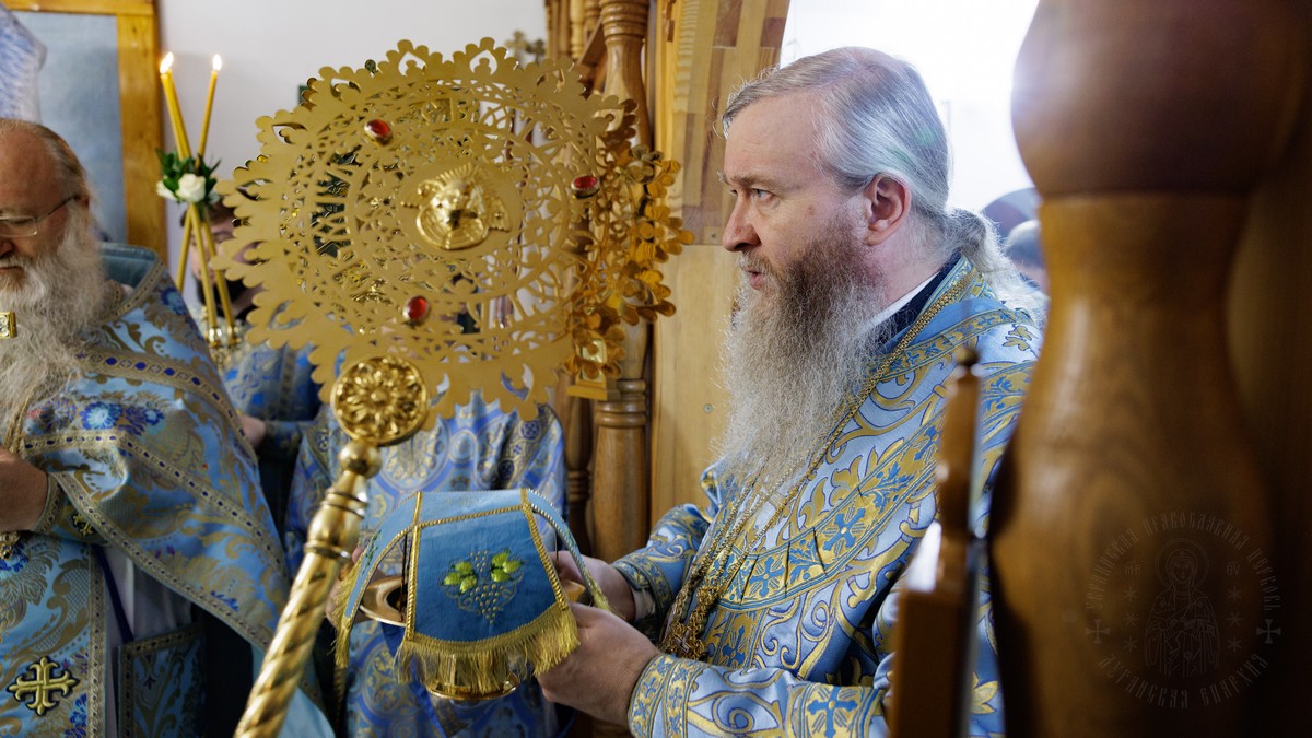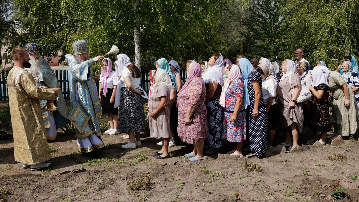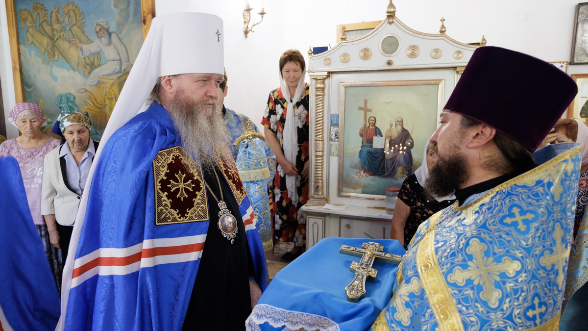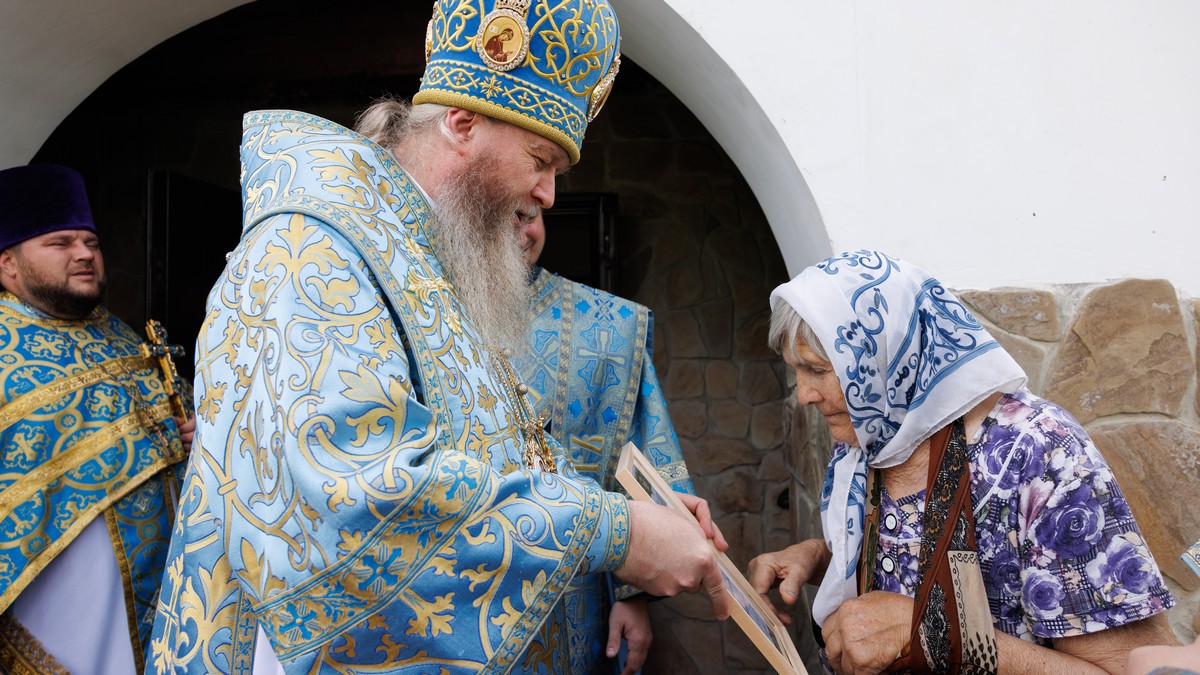 По завершении крестного хода, архипастырь прочел молитву Успению Пресвятой Богородицы, поздравил настоятеля и паству с праздником и престольным днем храма.