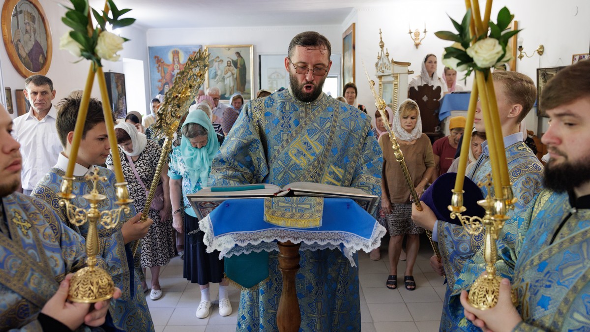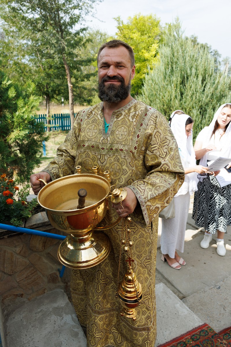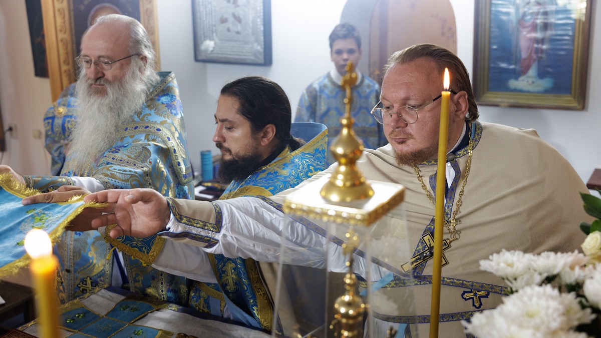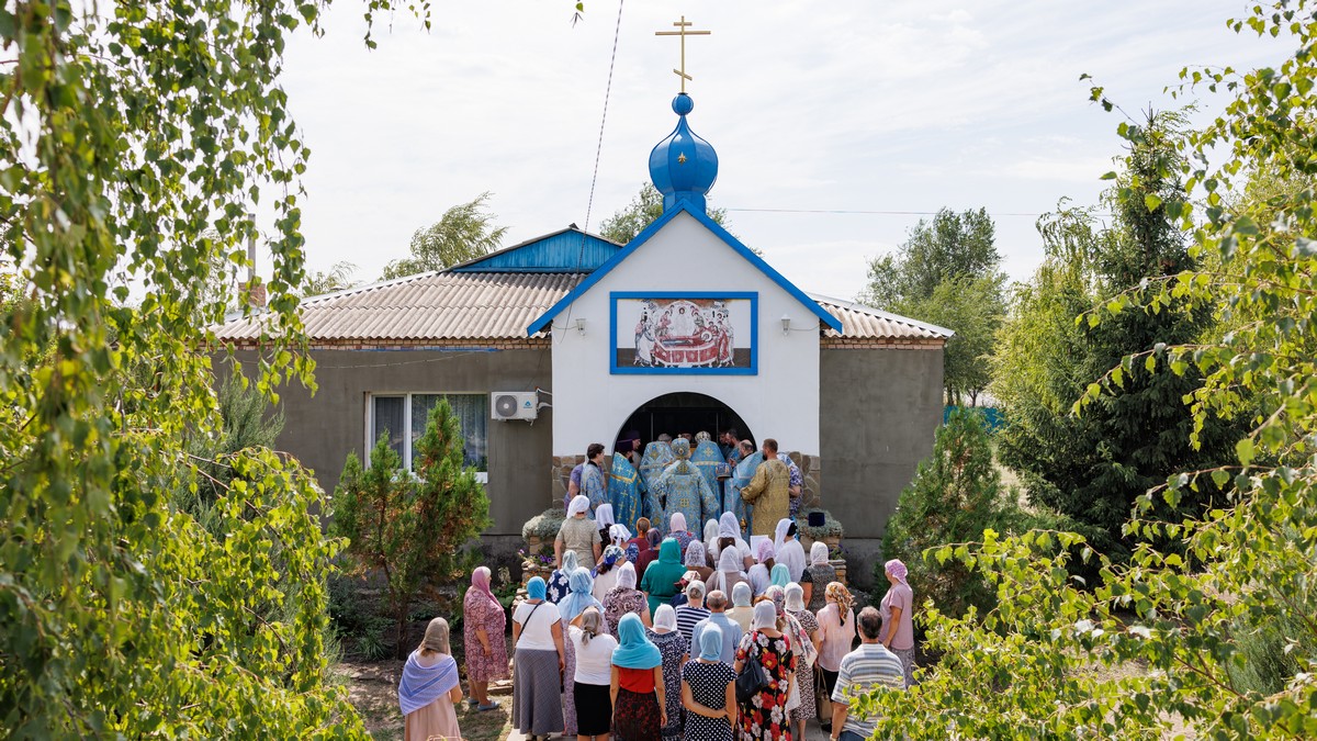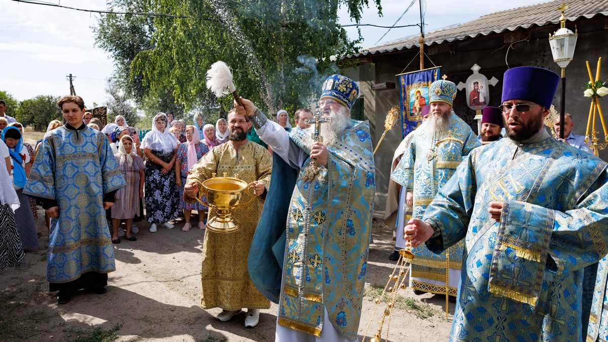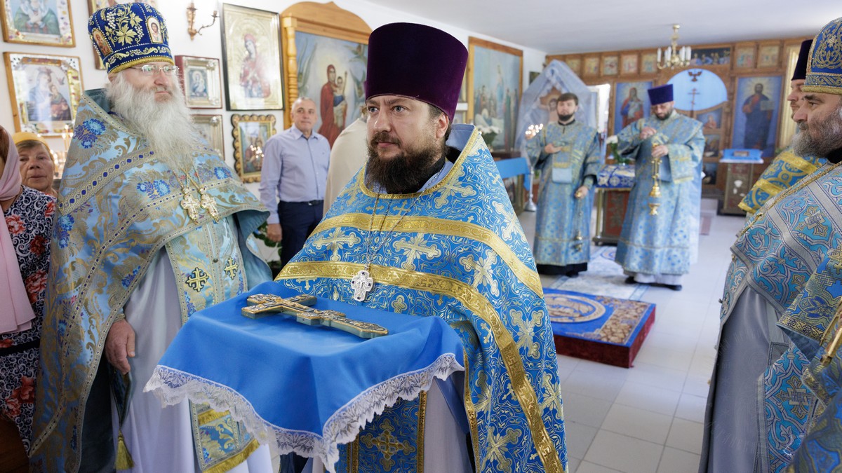 По завершении крестного хода, архипастырь прочел молитву Успению Пресвятой Богородицы, поздравил настоятеля и паству с праздником и престольным днем храма.