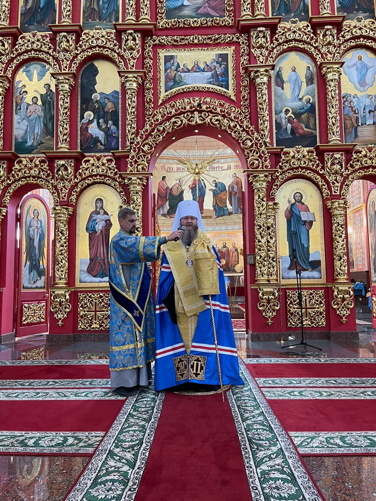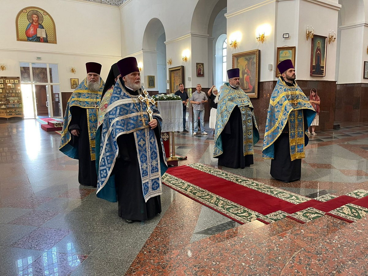 Его Высокопреосвященству сослужил настоятель собора, ректор университета профессор протоиерей Владимир Конончук с профессорско-преподавательской корпорацией.
