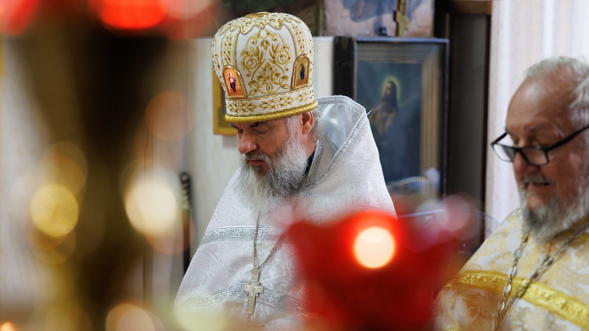 После сугубой ектении владыка вознес молитву о мире на Святой Земле, молитву о Святой Руси, и молитву об исцелении болящих.
