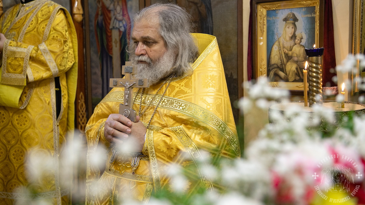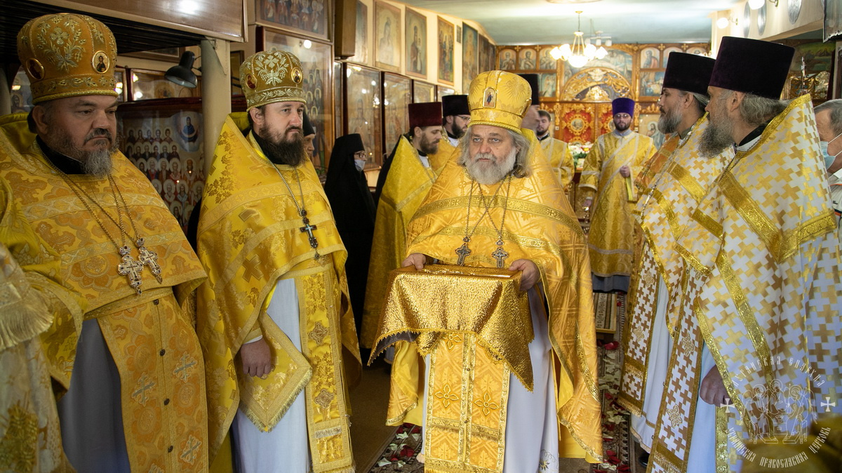 Затем, архипастырь поздравил молящихся с воскресным днем, а строителя обители отца Андрея Дубину с его 60-летним юбилеем, пожелав Всеукрепляющей помощи Божией в его дальнейших пастырских трудах.