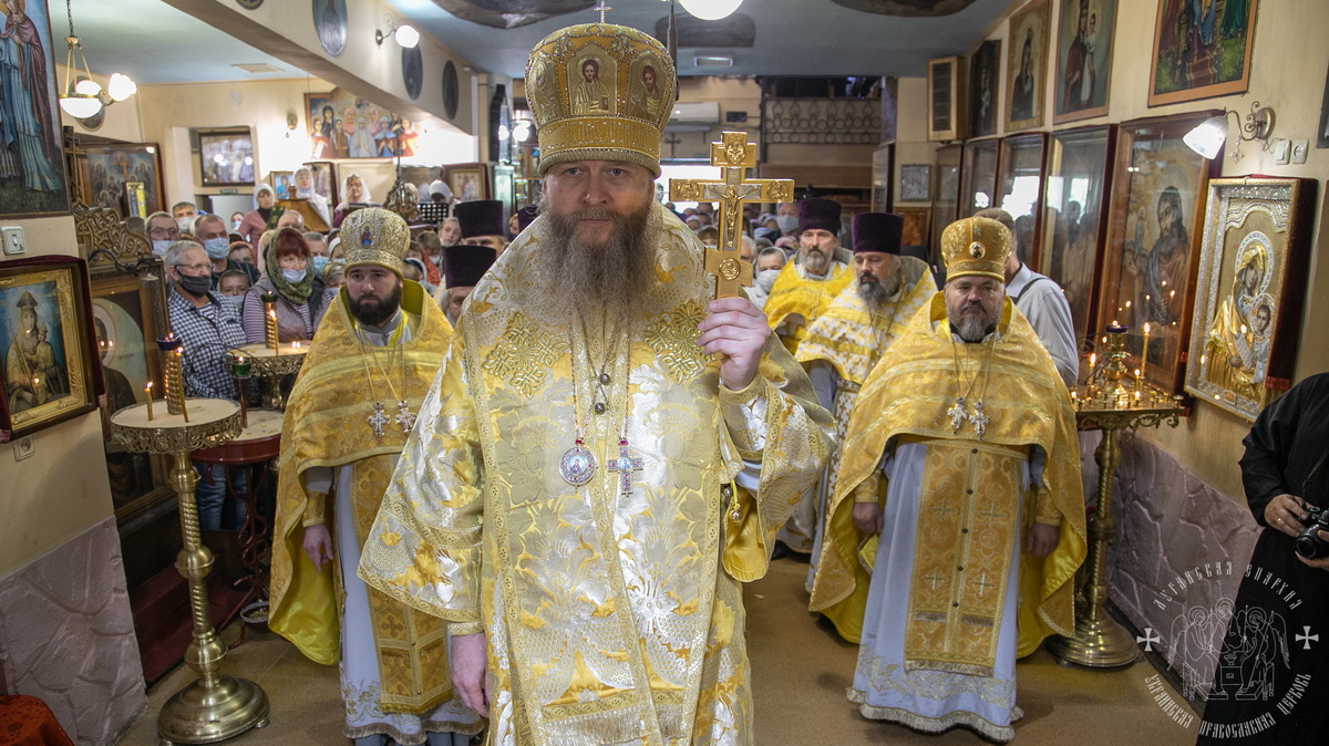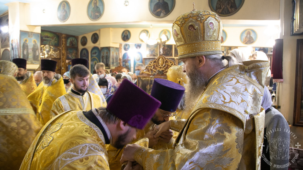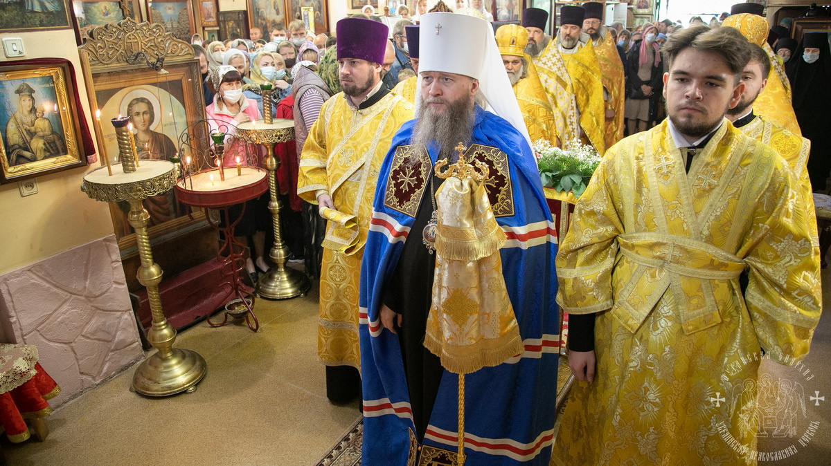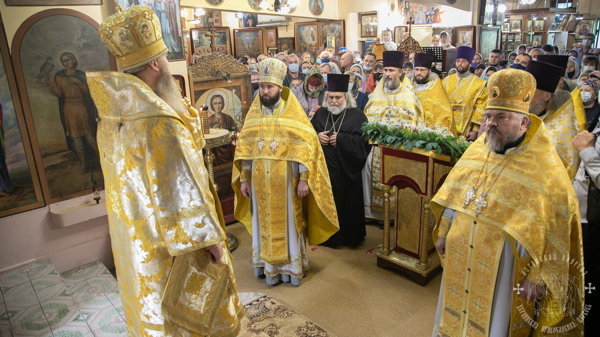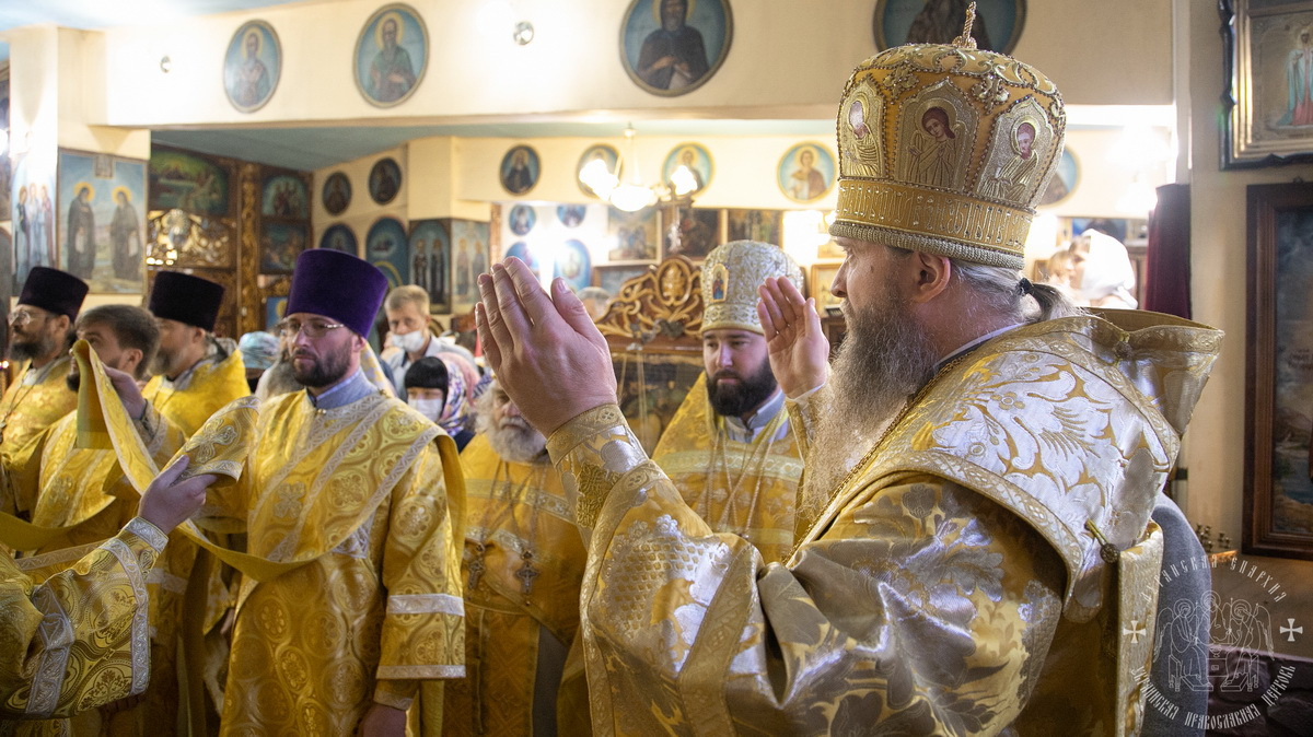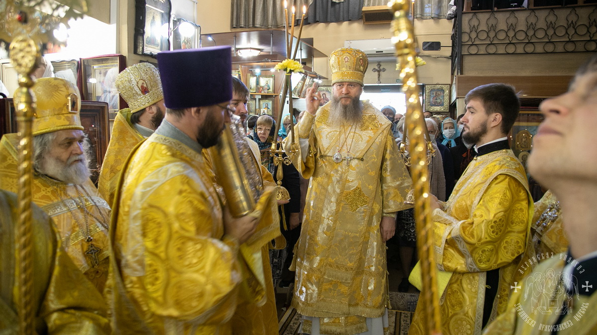 По окончании Литургии, владыка вместе со священнослужителями совершил славление праздника Успения Божией Матери.