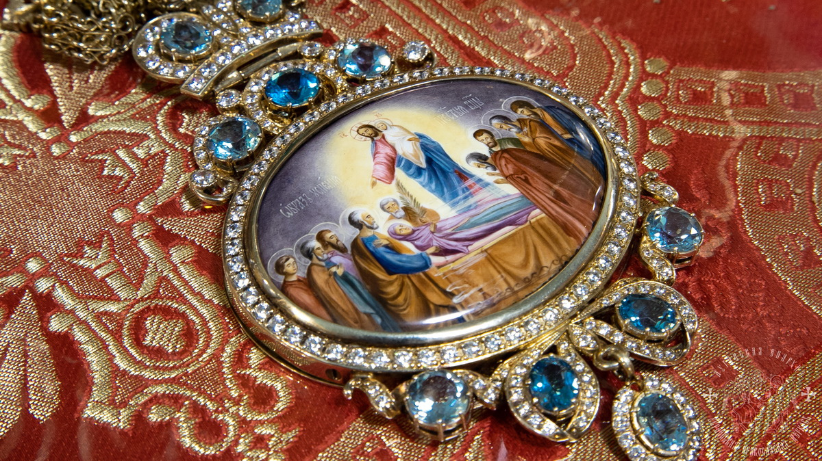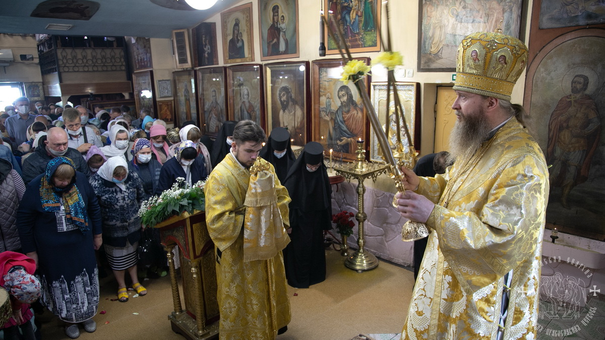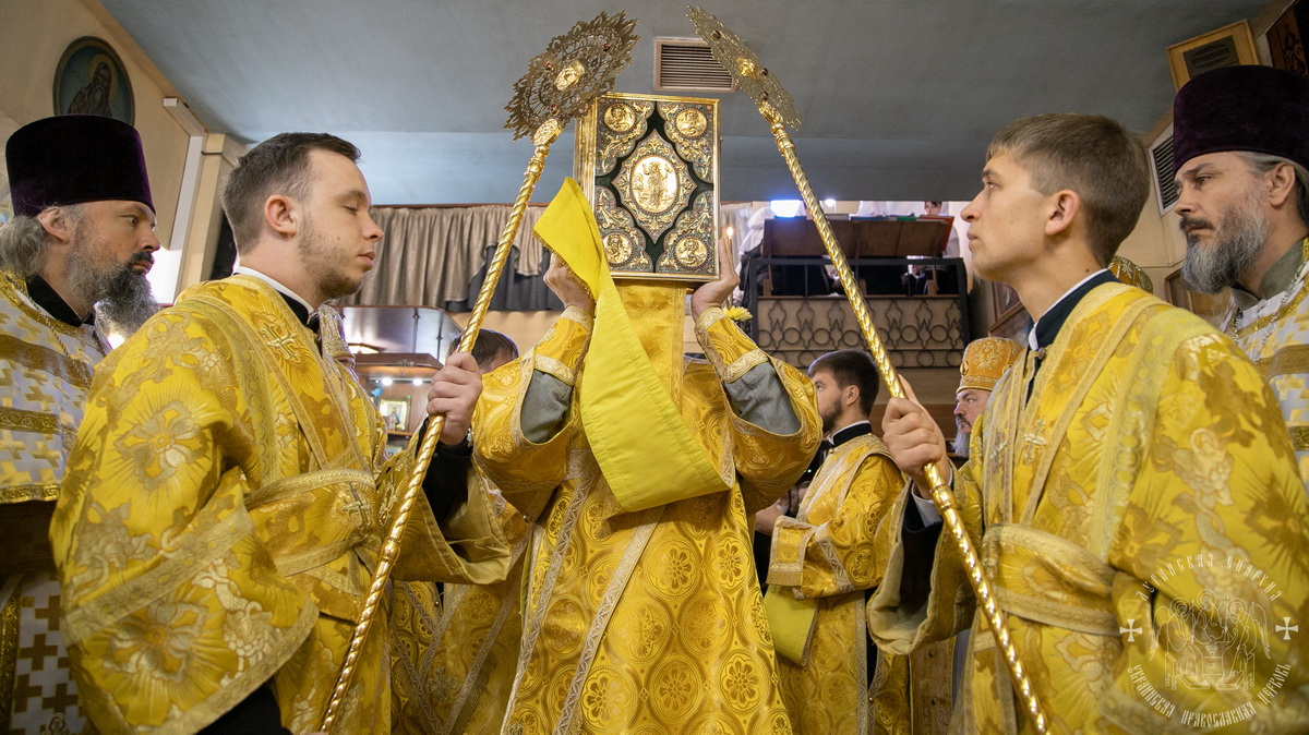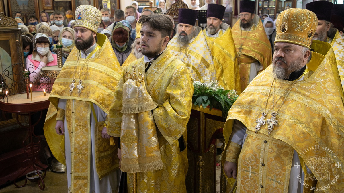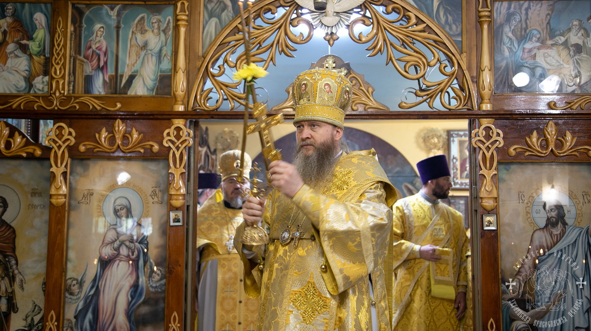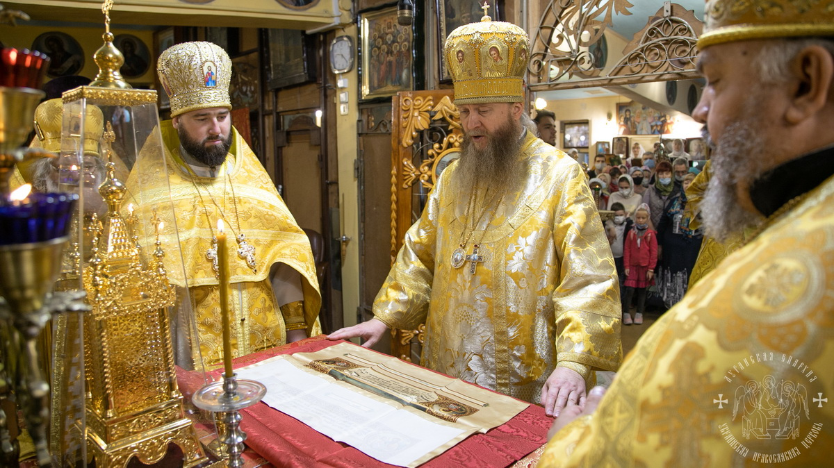 По окончании Литургии, владыка вместе со священнослужителями совершил славление праздника Успения Божией Матери.