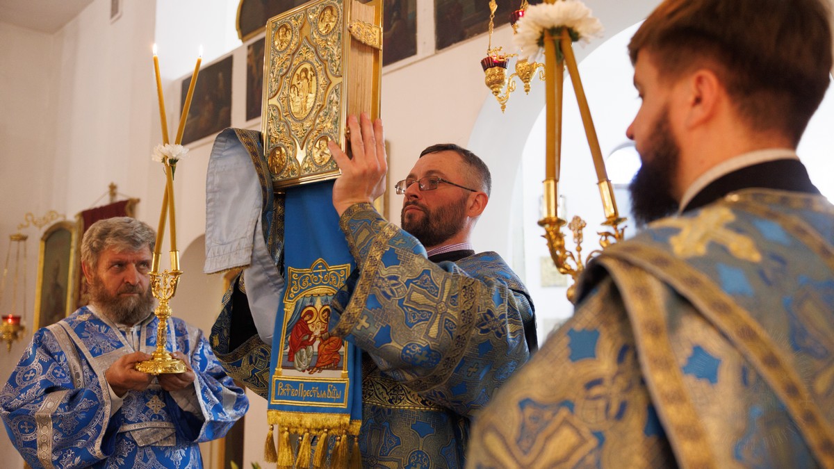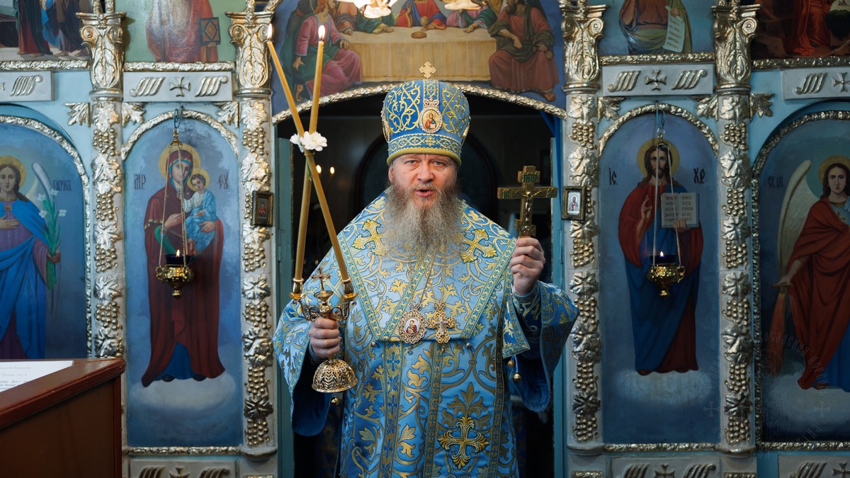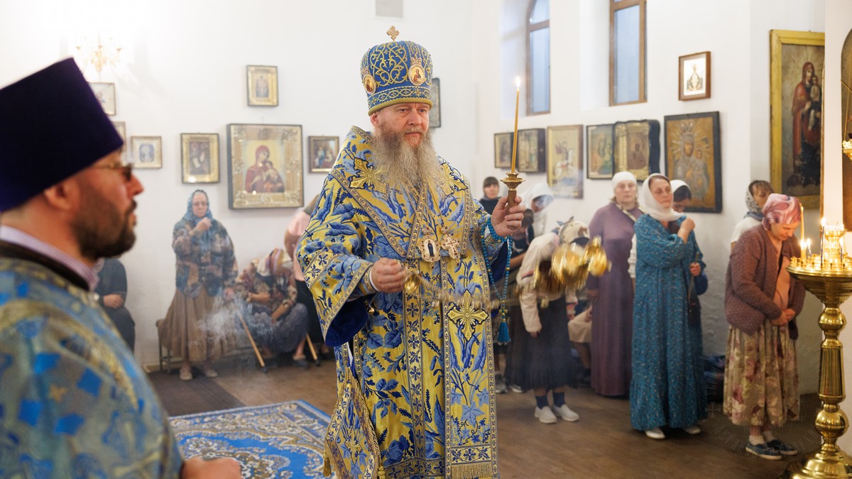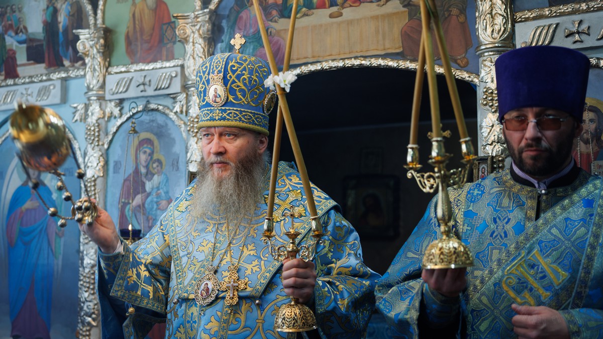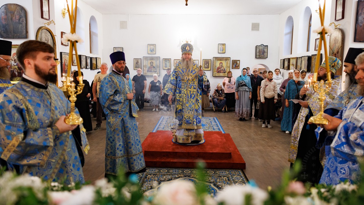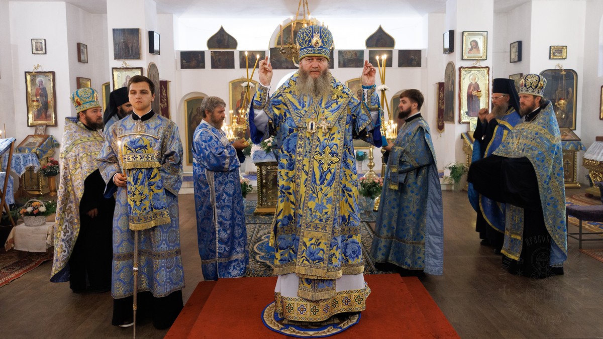 По окончании Литургии было совершено славление праздника, во время которого архипастырь прочел молитву Пресвятой Богородице.