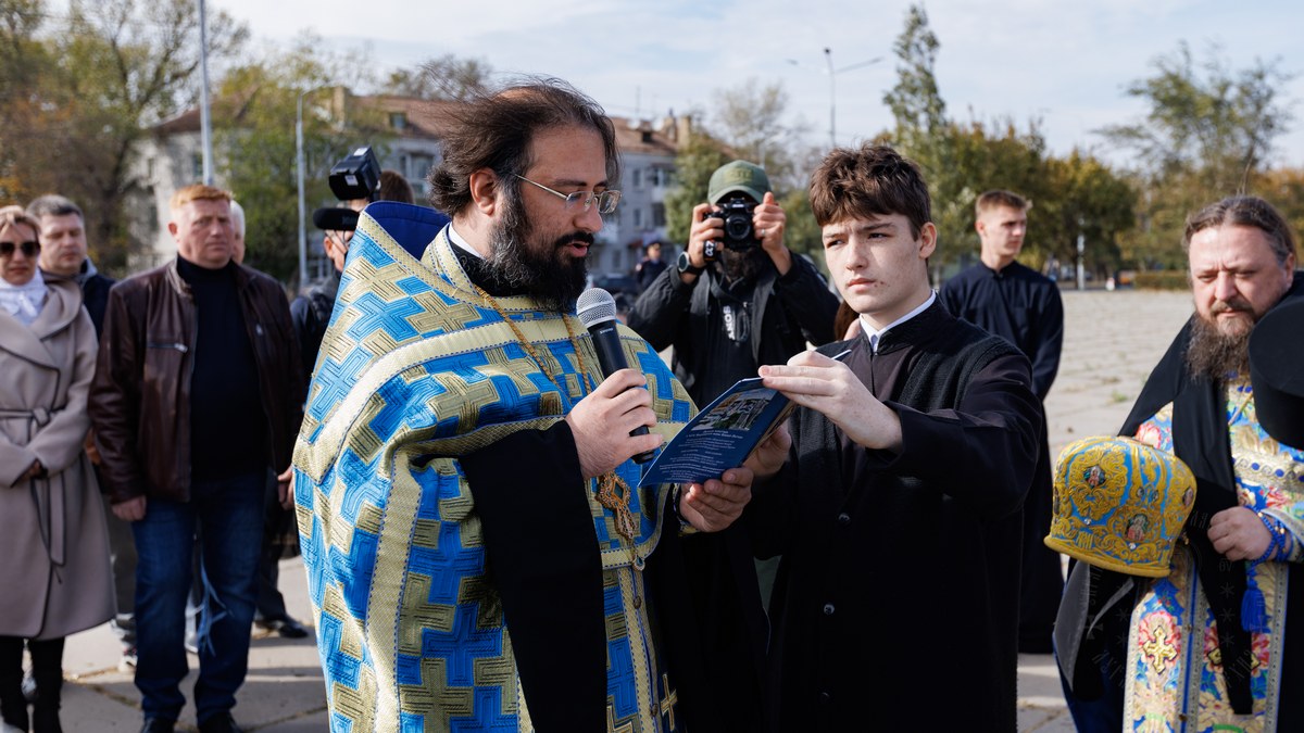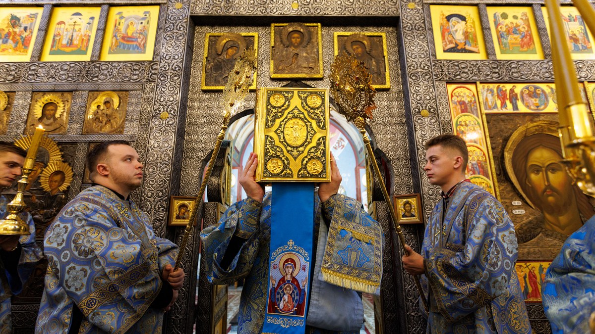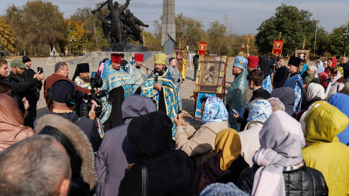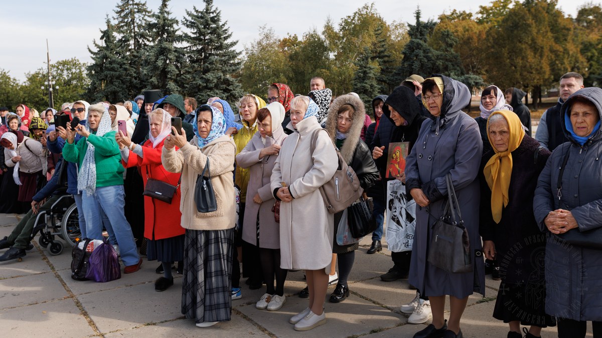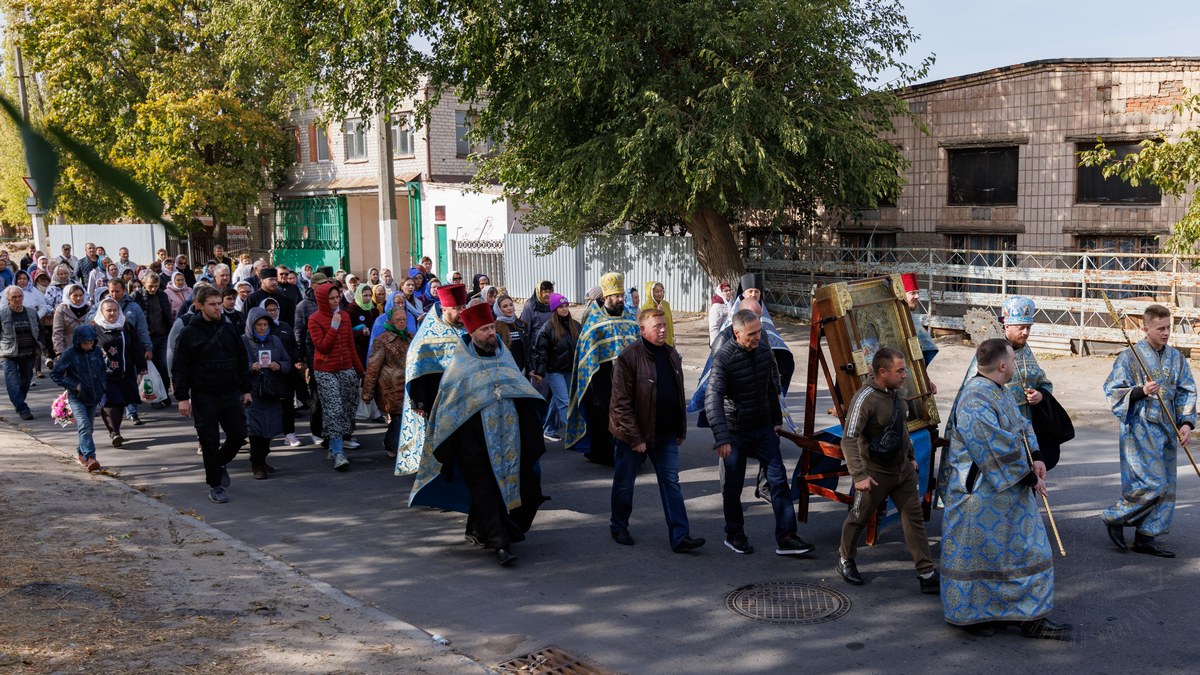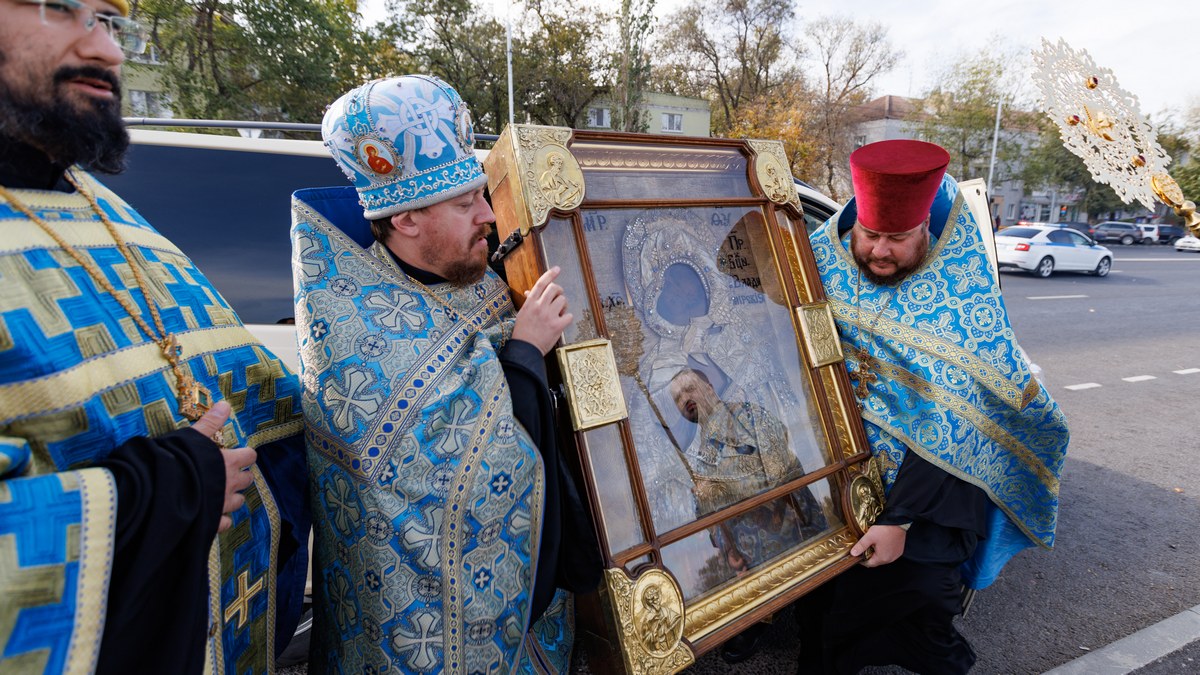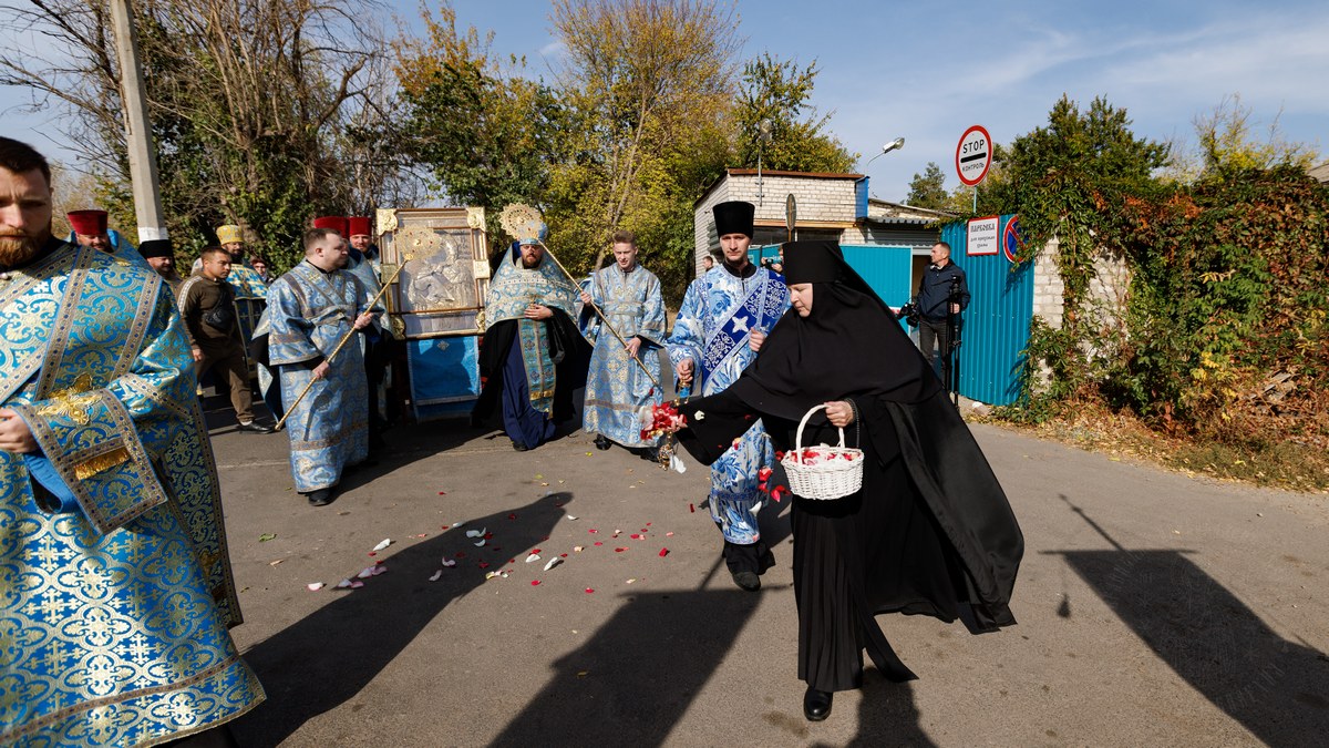 В 13 часов икону торжественно встретили на площади 40-летия Победы, что рядом с Луганским автовокзалом на улице Оборонной и с молитвой пронесли улицами города на подворье Вознесенского мужского монастыря в храм Всех Святых.