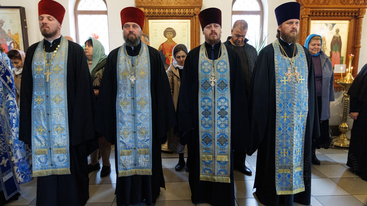 В храме подворья, Высокопреосвященнейший Пантелеимон, митрополит Луганский и Алчевский, в сослужении секретаря Епархии прот. Андрея Зозули, игумена Вознесенского мужского монастыря архим. Иоанна (Сухины) и братии обители, совершил акафистное пение Пресвятой Богородице перед прибывшей святыней.