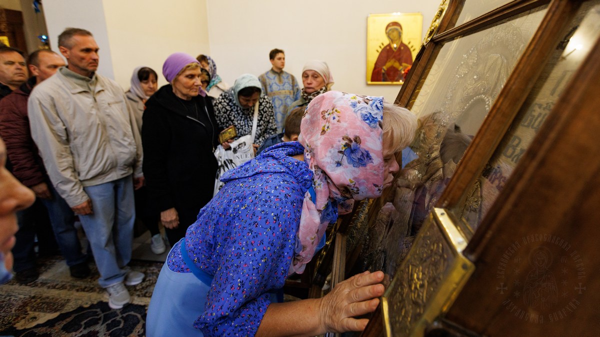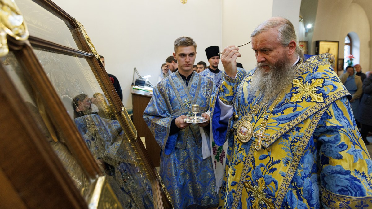 Во время полиелея многочисленные богомольцы приложились к чудотворному образу и подошли на помазание освященным елеем к архипастырю.