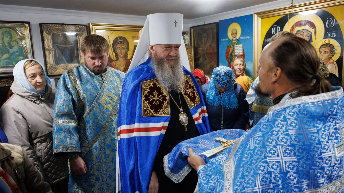 Затем, владыка поздравил паству с престольным днем и пожелал всем благодатного Покрова Царицы Небесной.