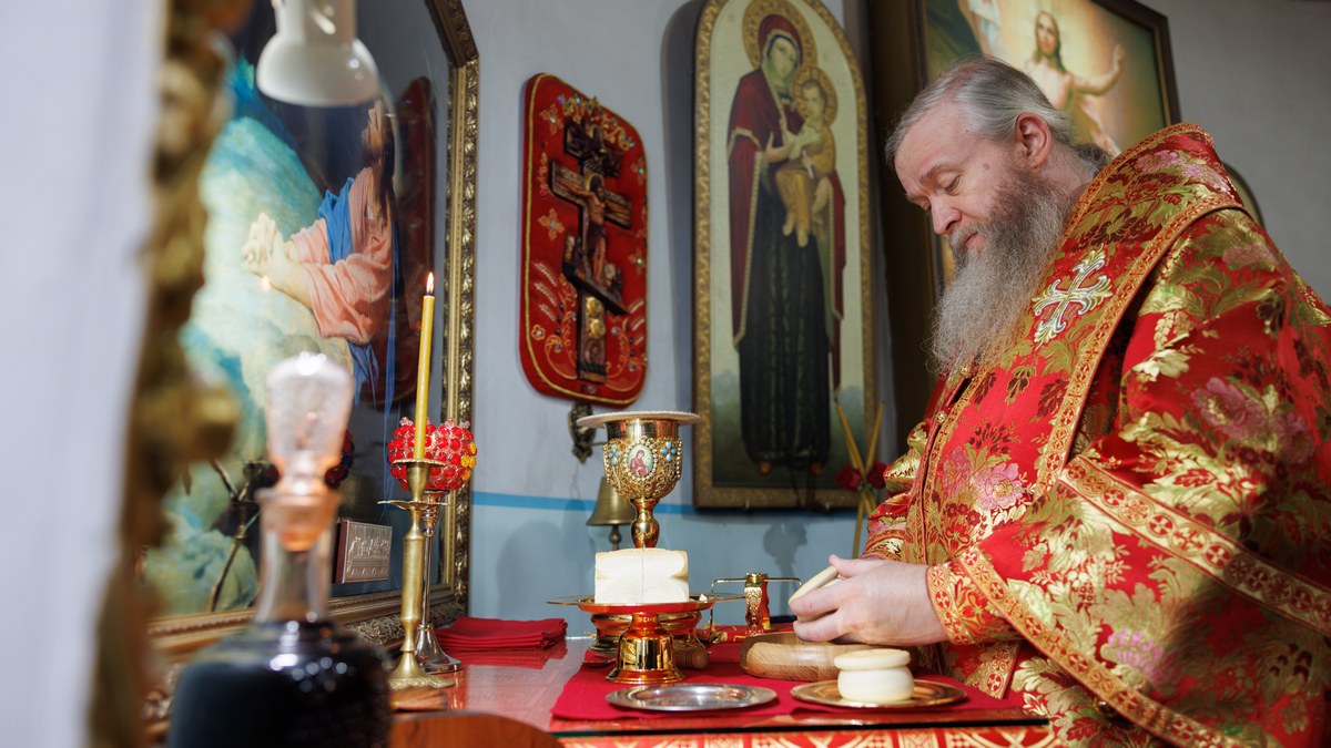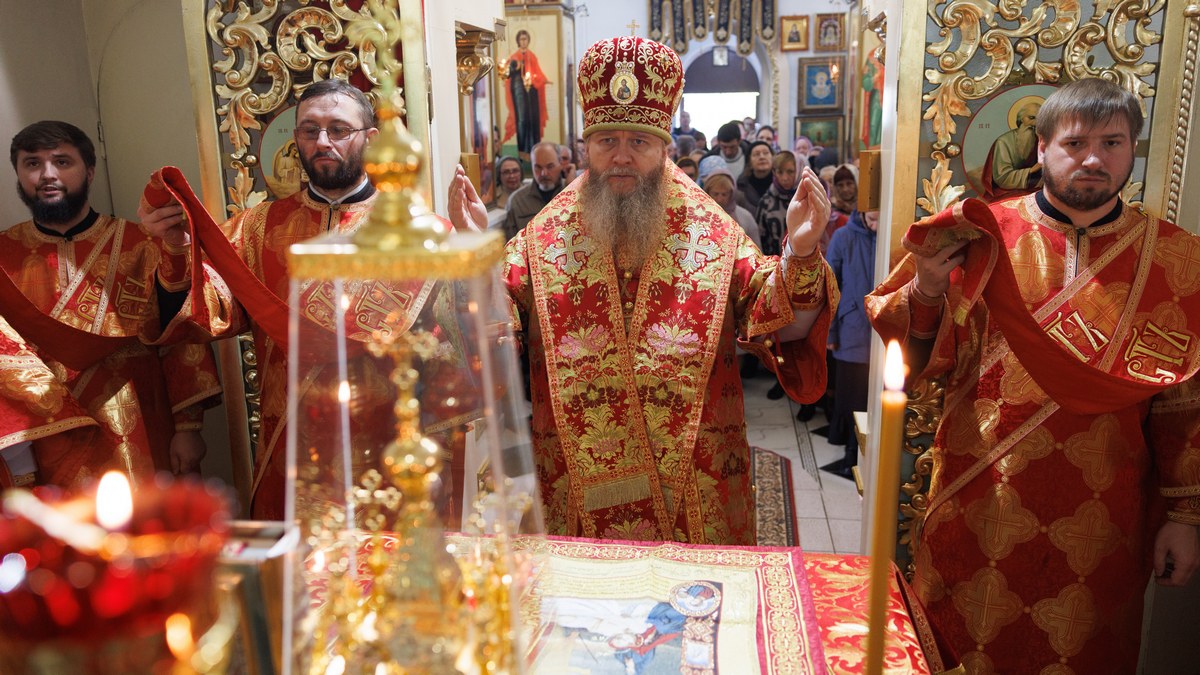 После сугубой ектении владыка вознес молитву о мире на Святой Земле, молитву о Святой Руси, и молитву об исцелении болящих.