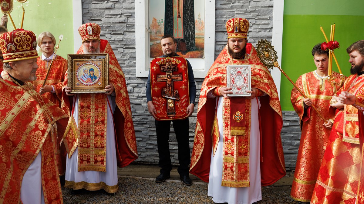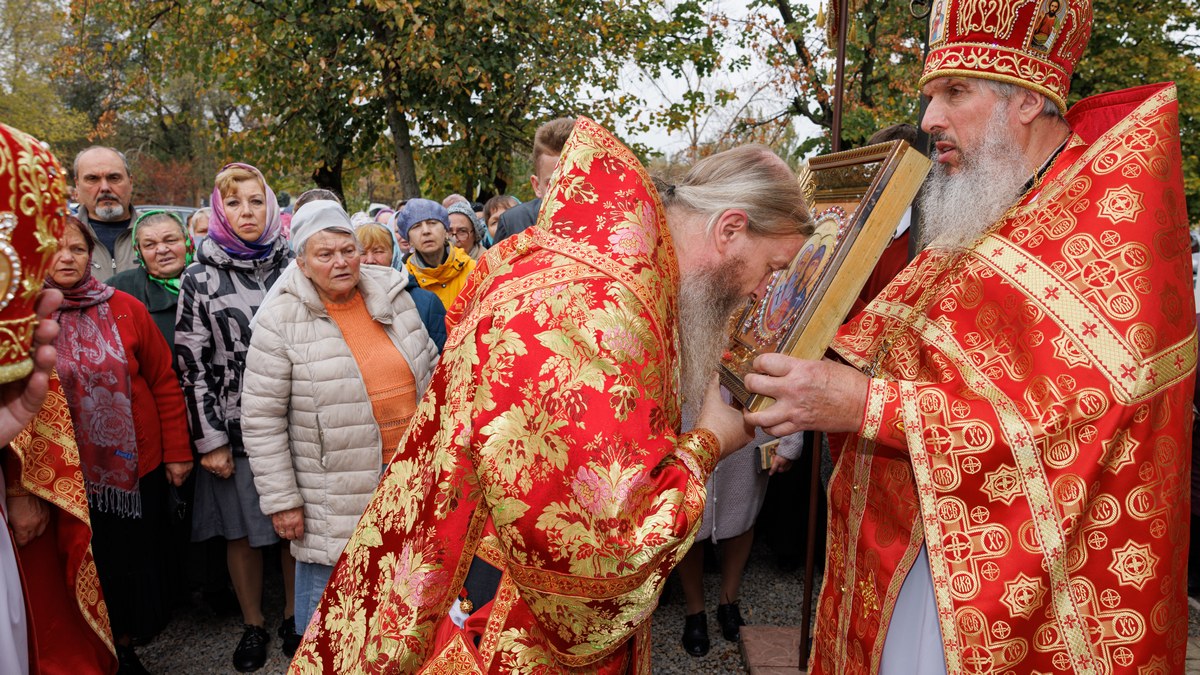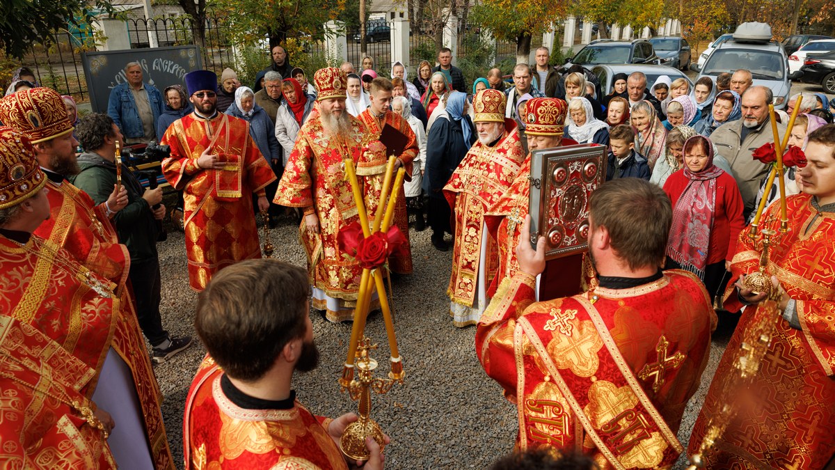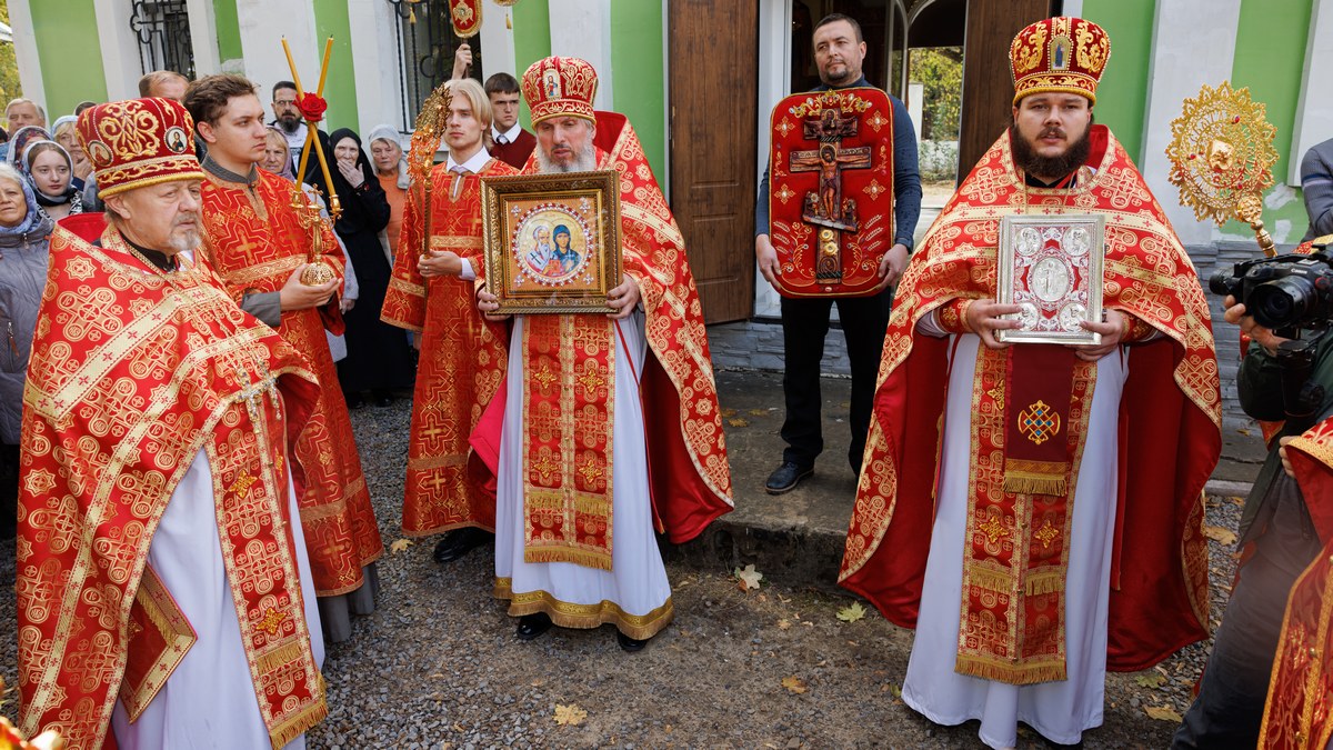 По окончании Литургии все участники соборной молитвы прошли крестным ходом вокруг храма, воспевая в молитвах угодников Божиих.