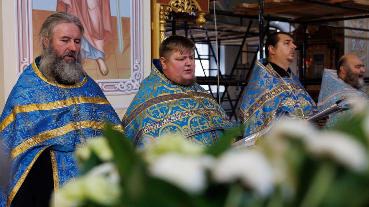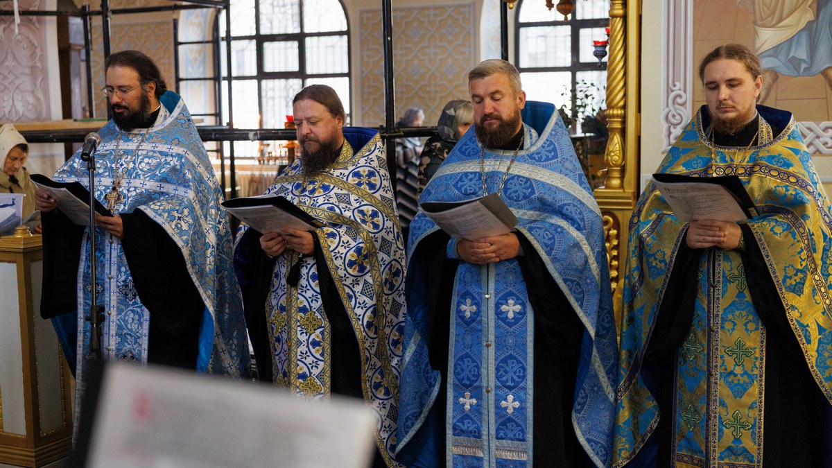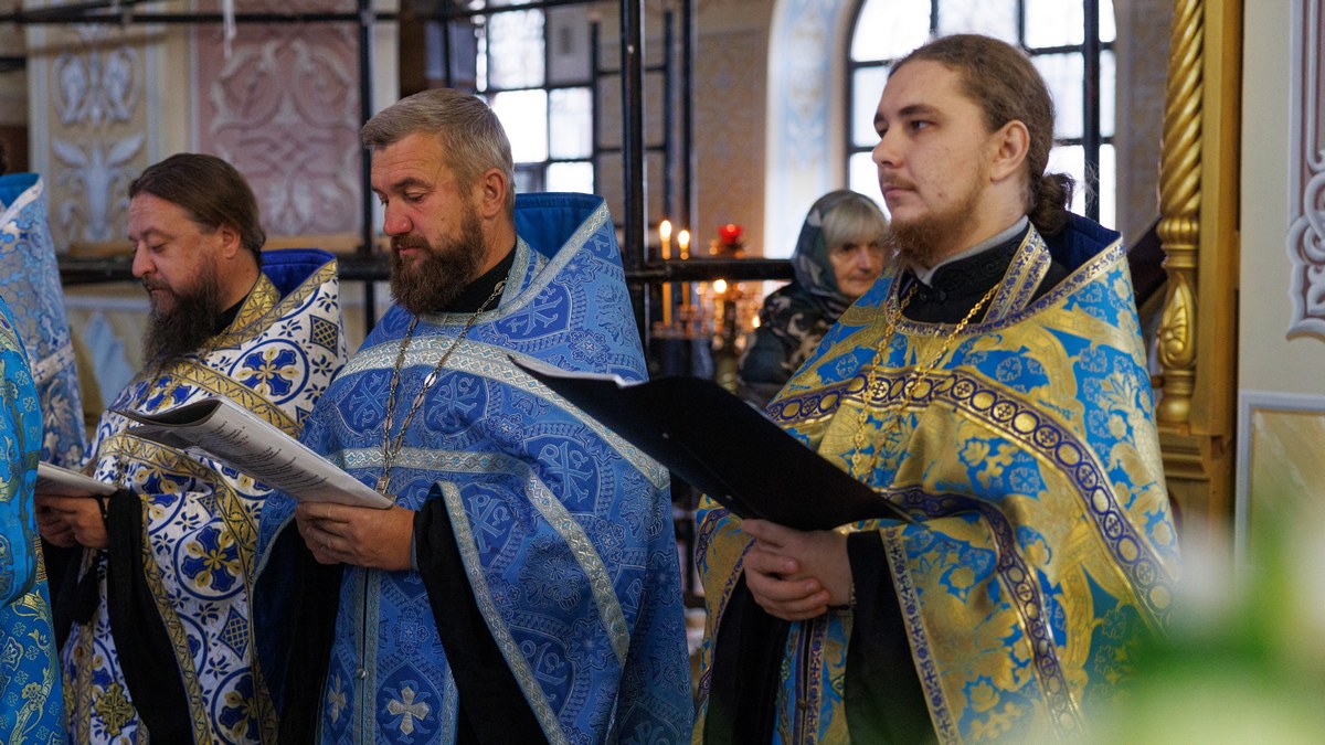 За молебном владыке сослужил секретарь Епархии прот. Андрей Зозуля, игумен Вознесенского мужского монастыря архим. Иоанн (Сухина), а также благочинный второго Луганского церковного округа архим. Тихон (Ильгов) с духовенством благочиния.
