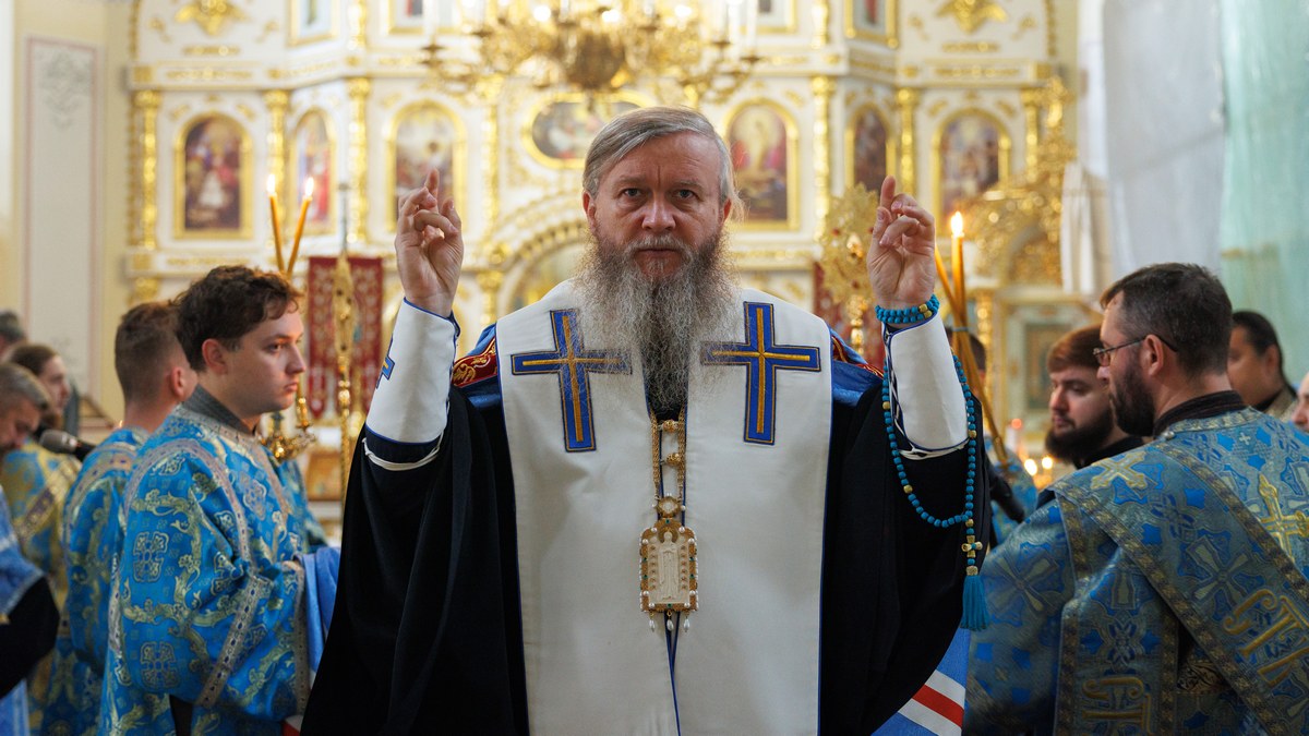 По окончании богослужения, владыка Пантелеимон произнес проповедь, поблагодарил духовенство и прихожан собора за соборную молитву и преподал благословение.