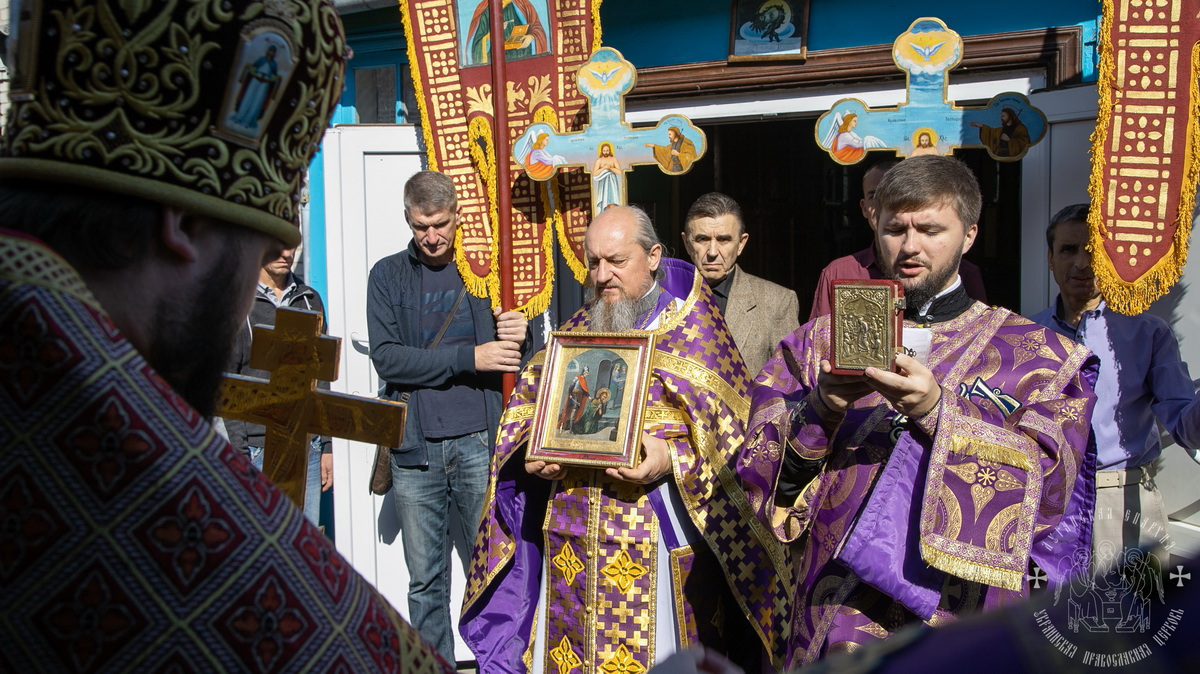 По окончании литургии священнослужители совершили крестный ход, во время которого окропляли молящихся святой водой.