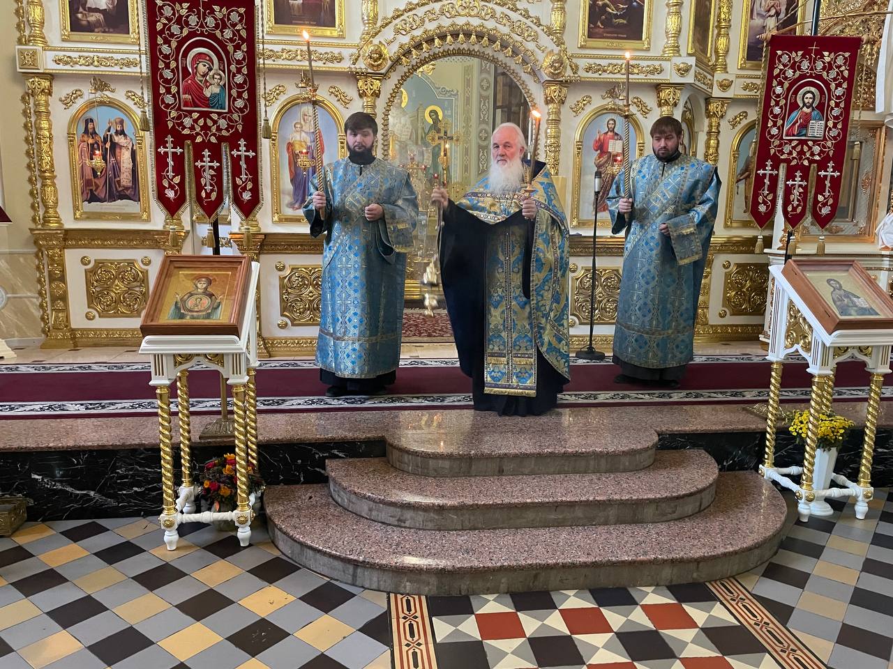 За богослужением отцу духовнику сослужил секретарь Епархии прот. Андрей Зозуля и благочинный Алчевского округа прот. Александр Устименко с духовенством благочиния.