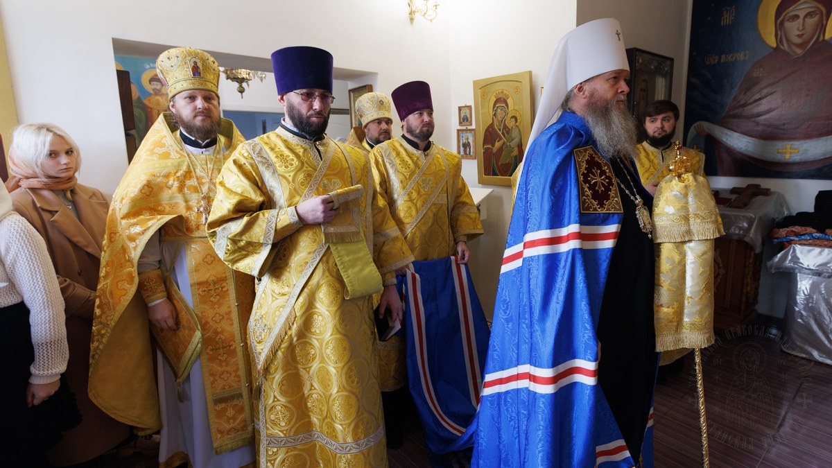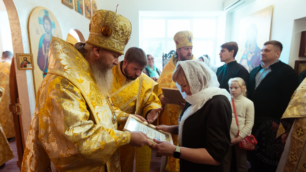 Его Высокопреосвященству сослужил секретарь Епархии прот. Андрей Зозуля, и.о благочинного первого Луганского округа прот. Алексий Болдырев и настоятель храма архим. Константин (Карпович).