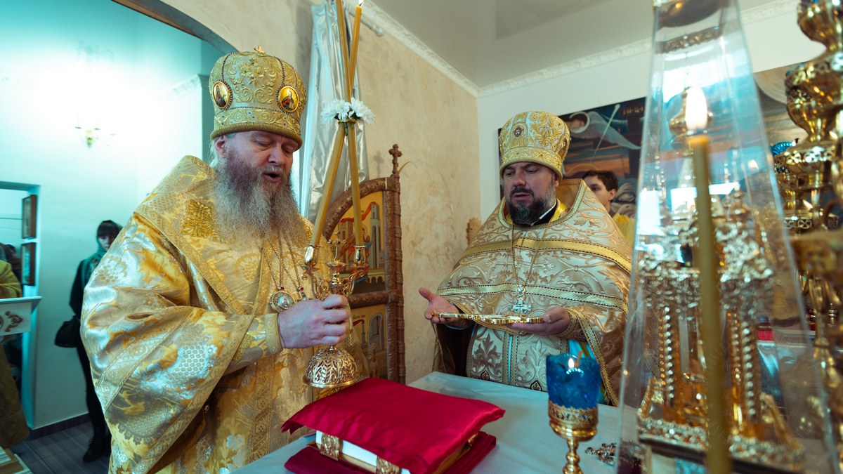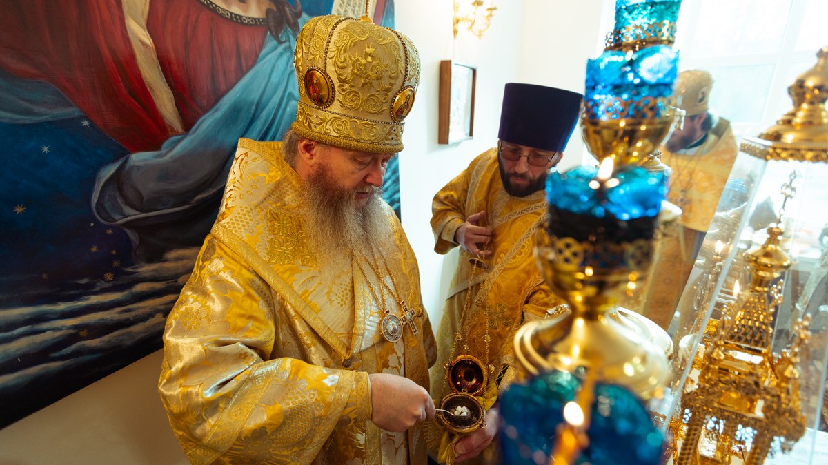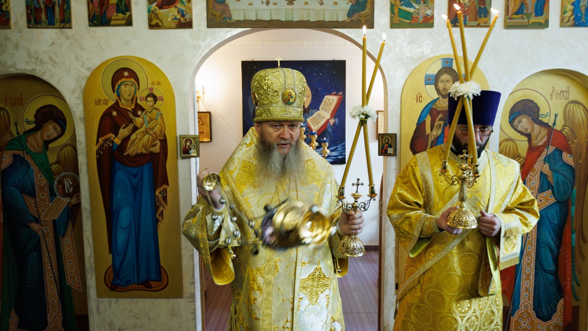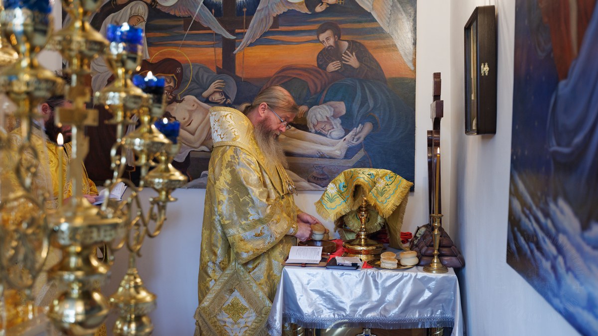 После сугубой ектении владыка вознес молитву о мире на Святой Земле, молитву о Святой Руси, и молитву об исцелении болящих.