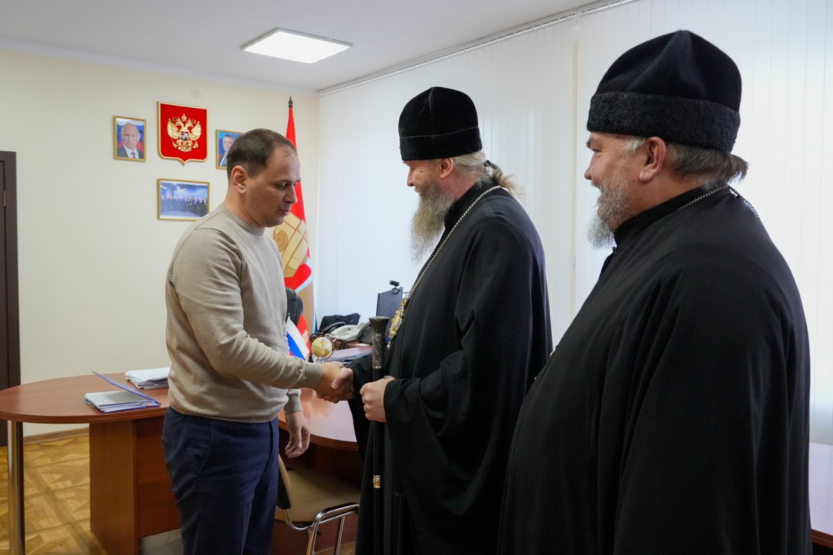 В рамках визита Владыка встретился с Главой городского округа г. Алчевска Альбертом Руслановичем Апшевым.