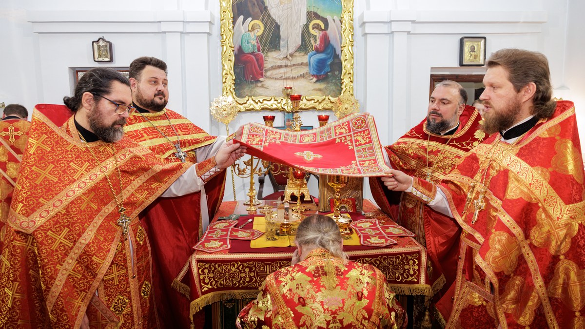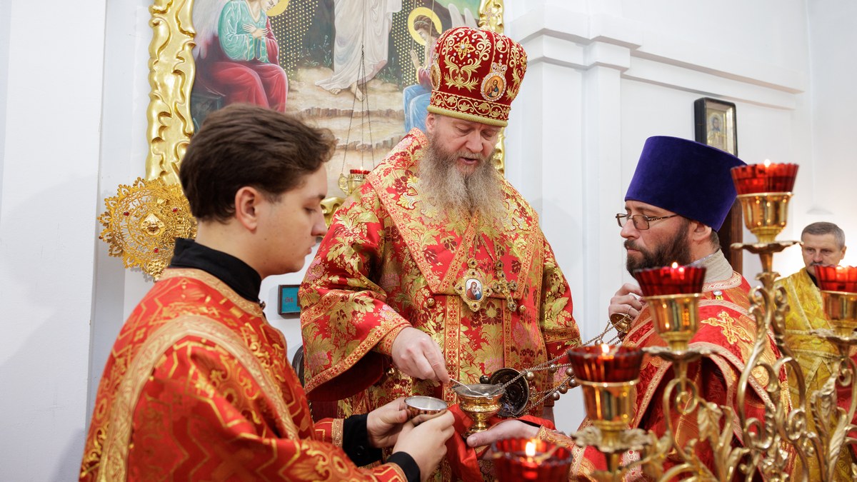 За Литургией Его Высокопреосвященству сослужил секретарь Епархии прот. Андрей Зозуля, и.о благочинного первого Луганского округа протоиерей Алексий Болдырев, настоятель храма протоиерей Олег Кислый, клирики прихода и приглашенное духовенство.