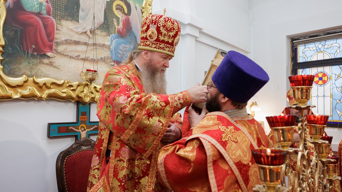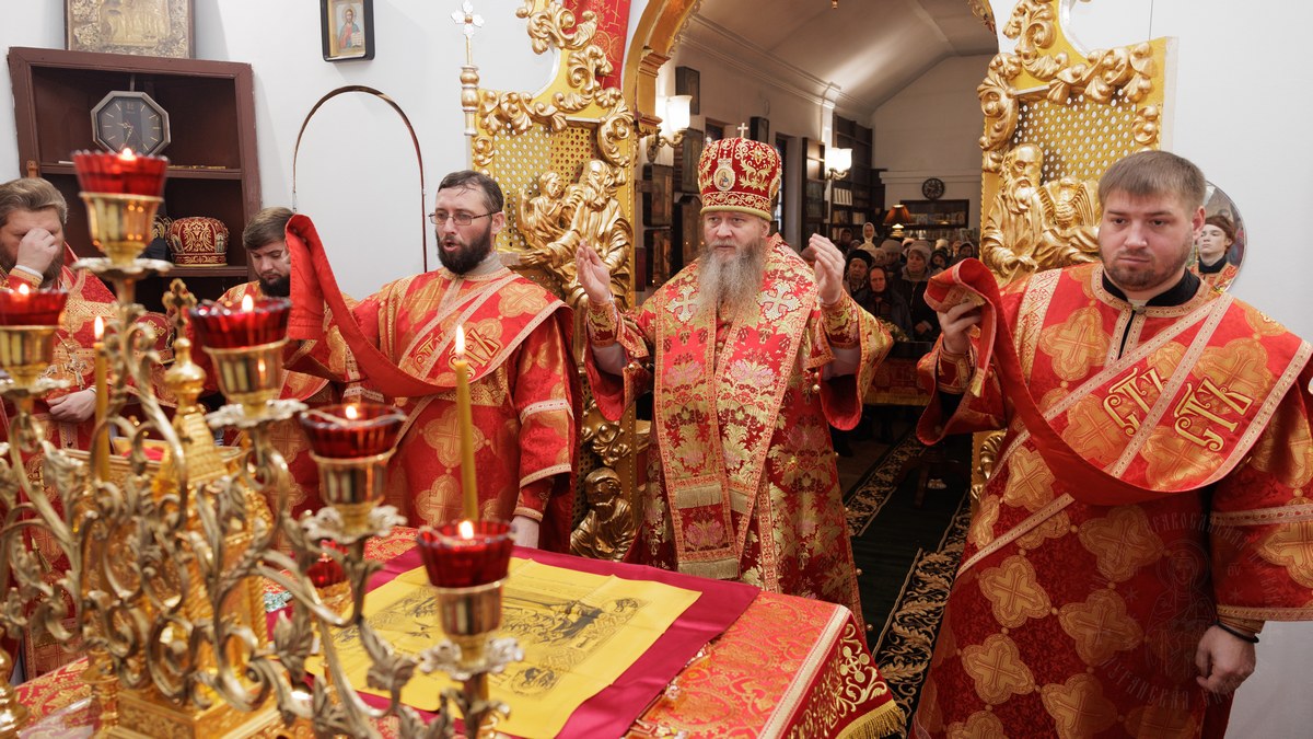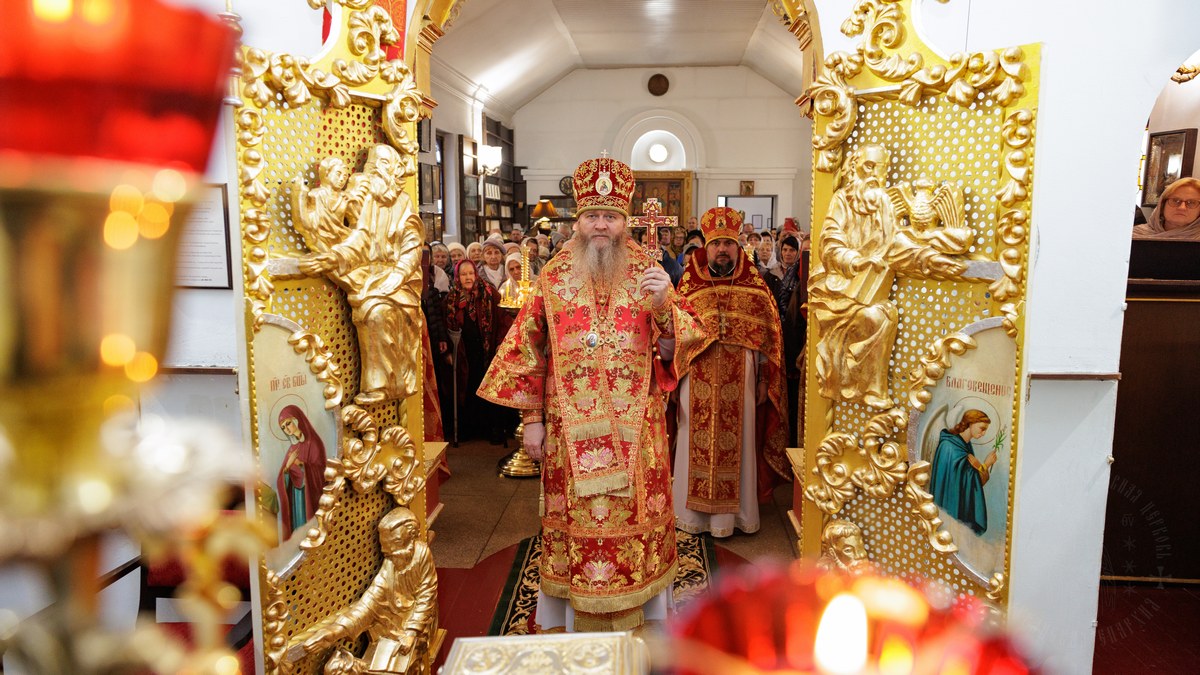 После сугубой ектении владыка вознес молитву о мире на Святой Земле, молитву о Святой Руси, и молитву об исцелении болящих.