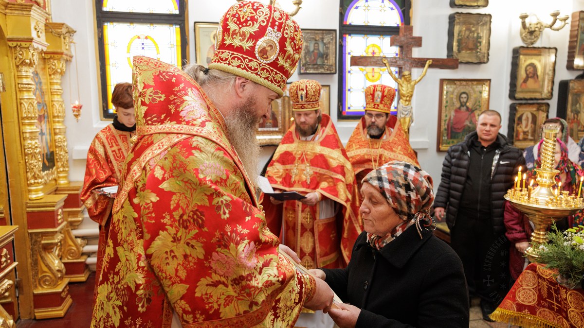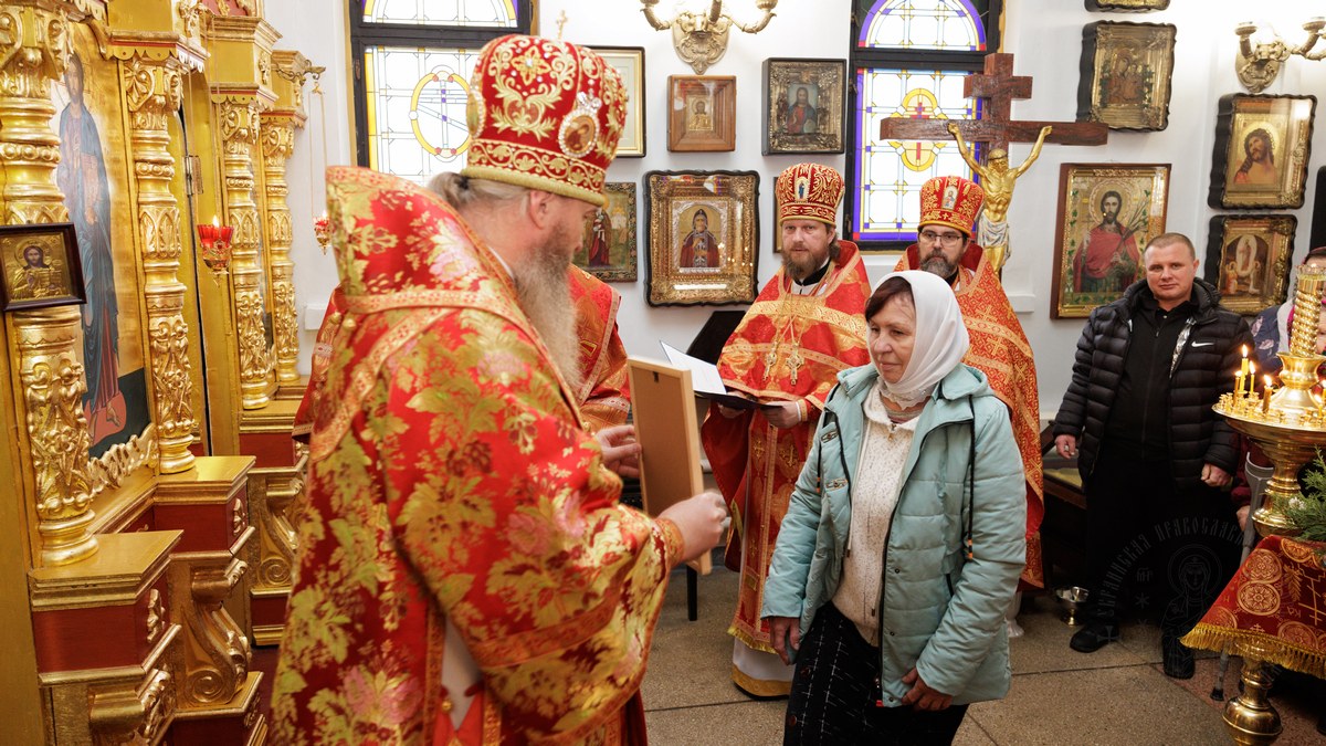 Владыка Пантелеимон так же поздравил настоятеля и прихожан с престольным праздником, вручил юбилейные грамоты труженицам прихода, поздравил именинников с днем Небесного покровителя и преподал всем архипастырское благословение.