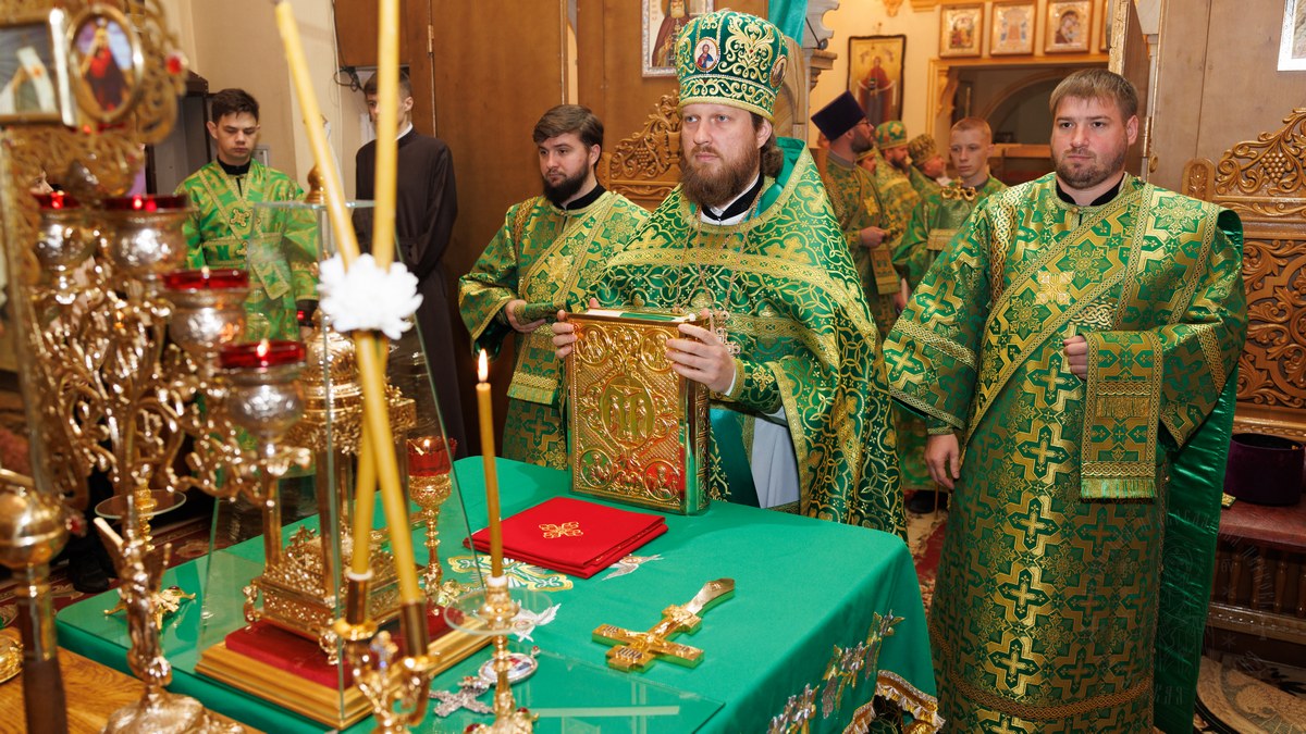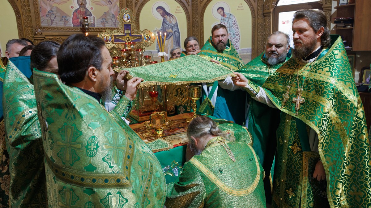 В конце богослужения были вознесены молитвы и совершено славление Владимирской иконе Божией Матери и преподобному Нестору Летописцу.