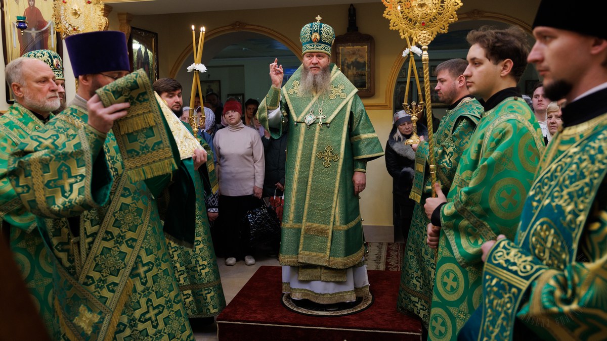 После сугубой ектении владыка вознес молитву о мире на Святой Земле, молитву о Святой Руси, и молитву об исцелении болящих.