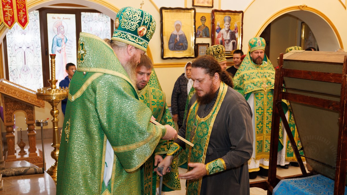 Его Высокопреосвященству сослужил секретарь Епархии прот. Андрей Зозуля, благочинный Алчевского округа прот. Александр Устименко, благочинный Михайловского церковного округа Ровеньковской Епархии, прот. Александр Притула, благочинный Ровеньковского церковного округа Ровеньковской Епархии, прот. Григорий Устименко, а также духовенство благочиния.
