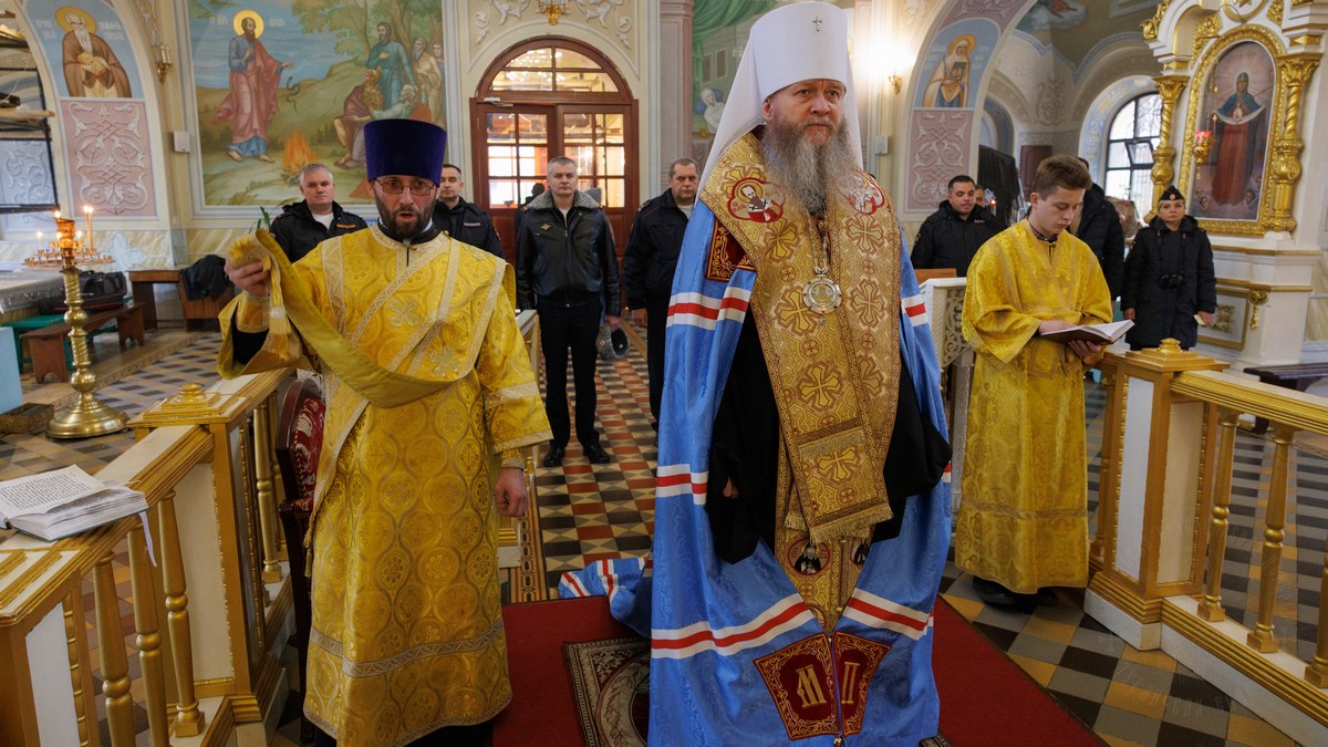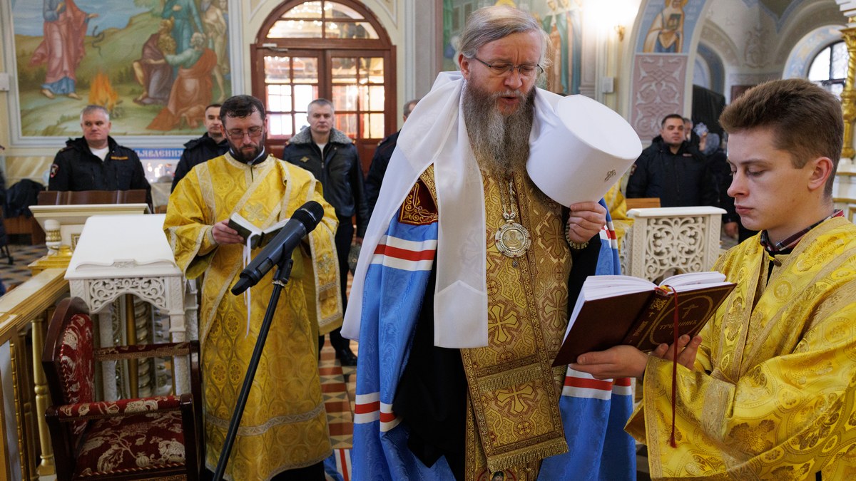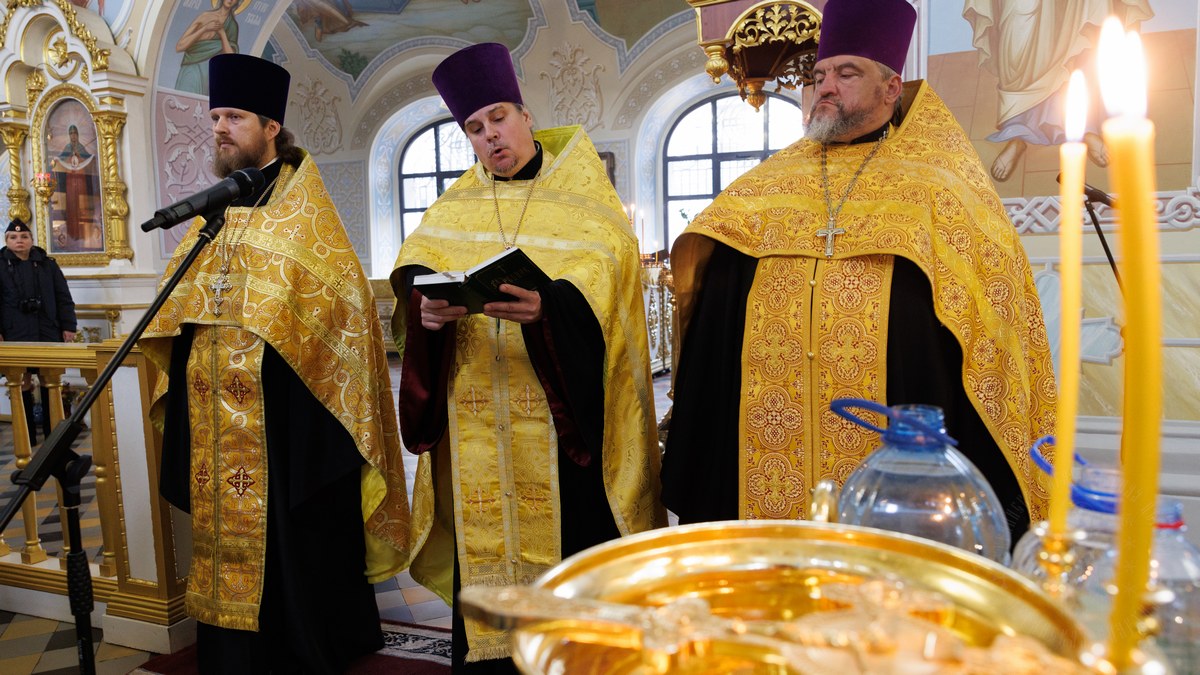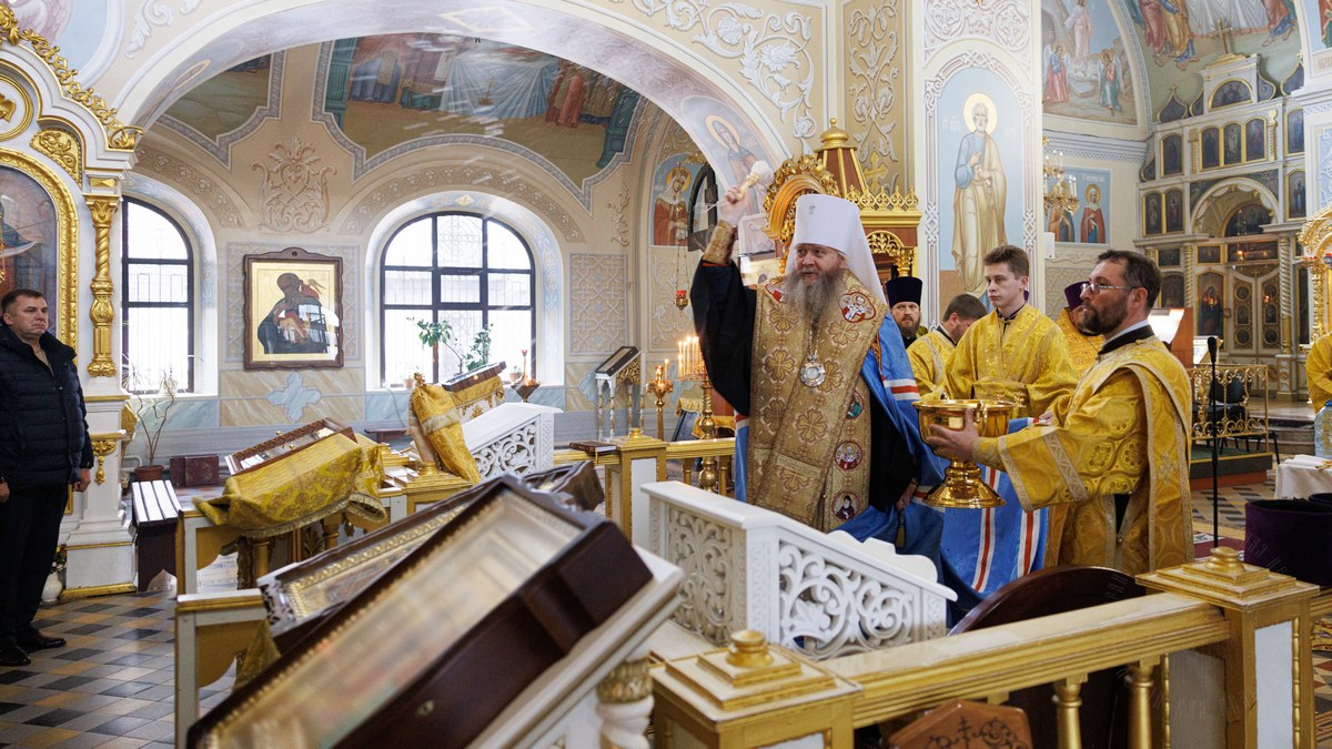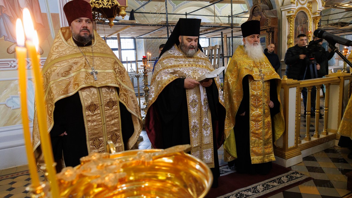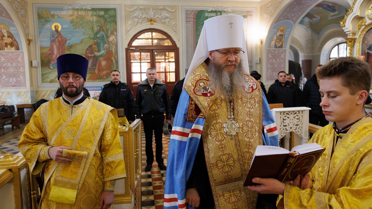 Его Высокопреосвященству сослужил секретарь Епархии прот. Андрей Зозуля, духовник Епархии прот. Владимир Соловей, благочинный второго городского округа архим. Тихон (Ильгов), благочинный центрального округа прот. Александр Пономарев, и.о благочинного первого округа прот. Алексий Болдырев, а также приглашенное духовенство.