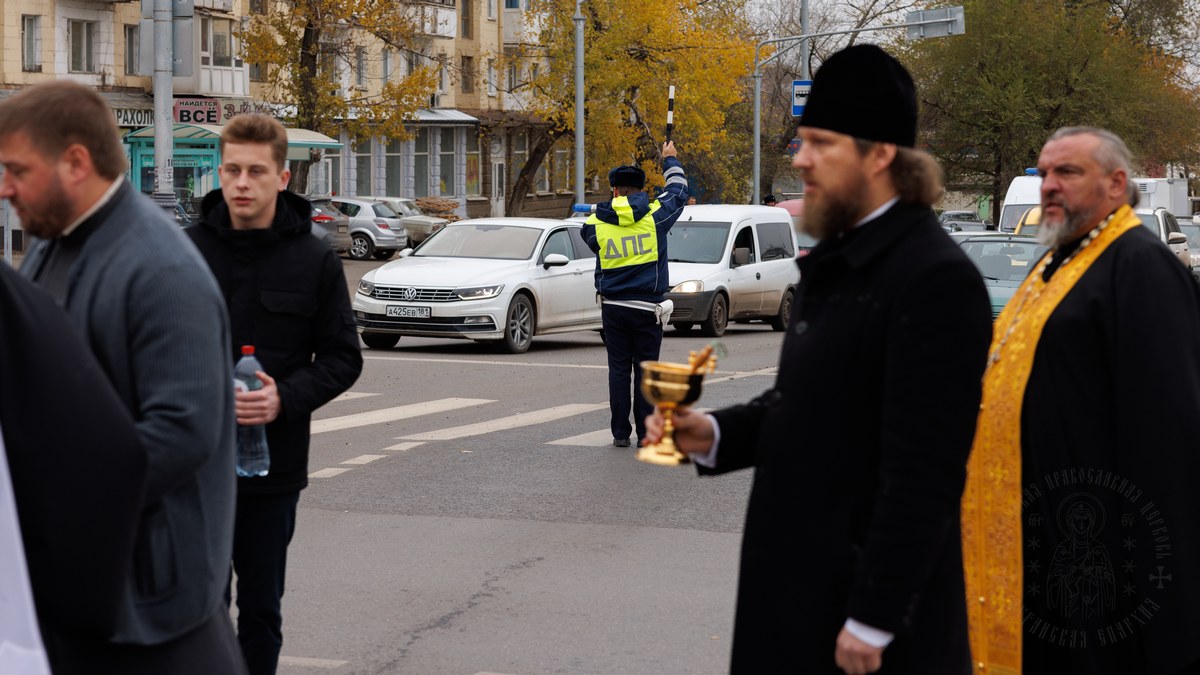 За богослужением молился начальник управления государственной инспекции безопасности дорожного движения МВД по Луганской Народной Республике, полковник полиции Павел Павлович Шаблинский, начальник отдела организационно-аналитической работы и пропаганды безопасности дорожного движения управления Государственной инспекции безопасности дорожного движения МВД по Луганской Народной Республике полковник полиции Семко Максим Викторович с сотрудниками УГИБДД МВД по ЛНР.
