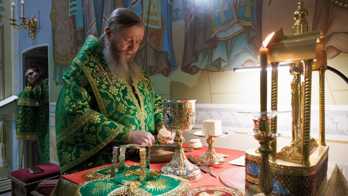 После сугубой ектении владыки вознесли молитву о мире на Святой Земле, молитву о Святой Руси, и молитву об исцелении болящих.